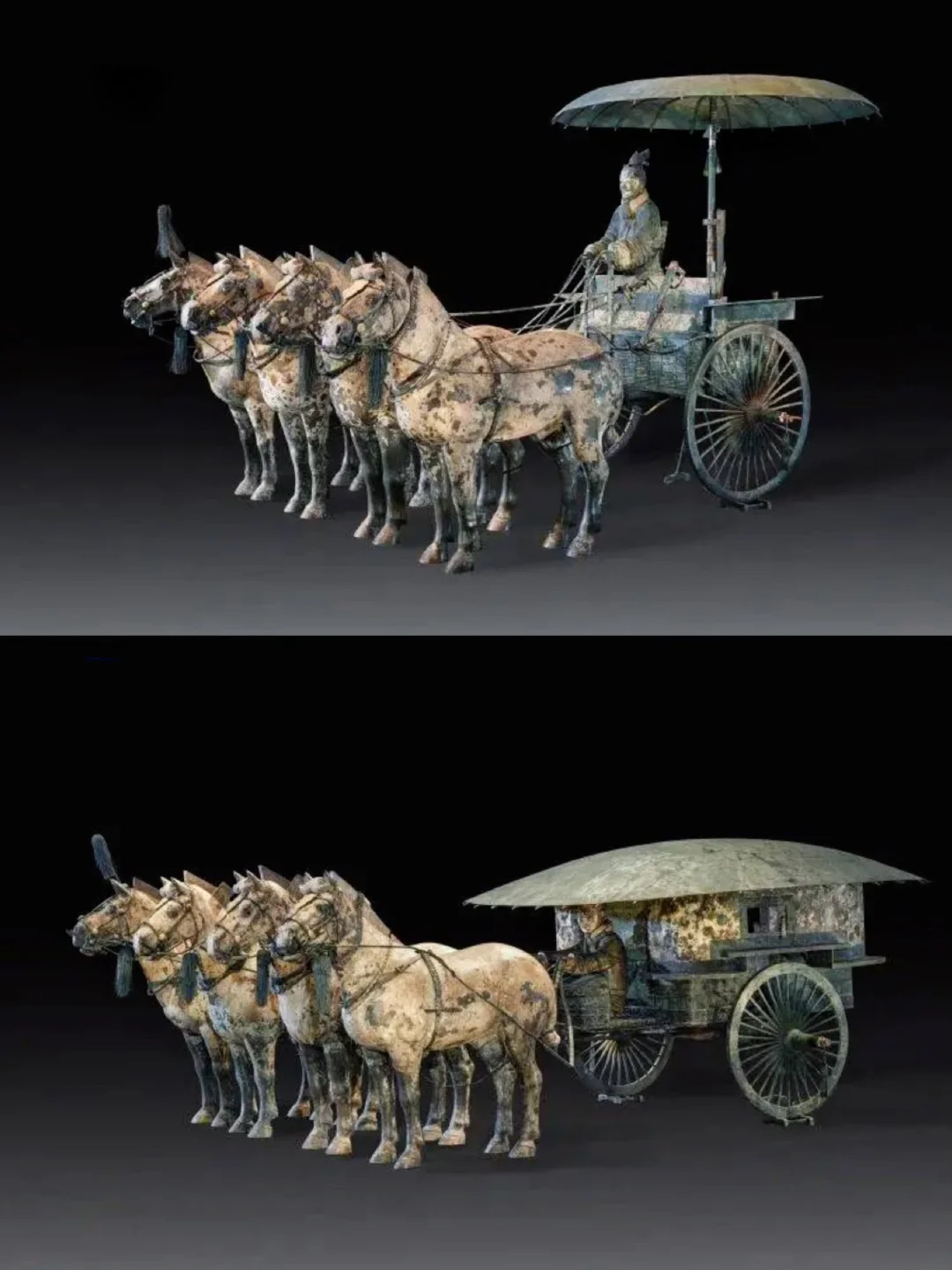 现藏秦始皇帝陵博物院。秦代青铜铸造巅峰,再现帝王车马规制,工艺精密。
