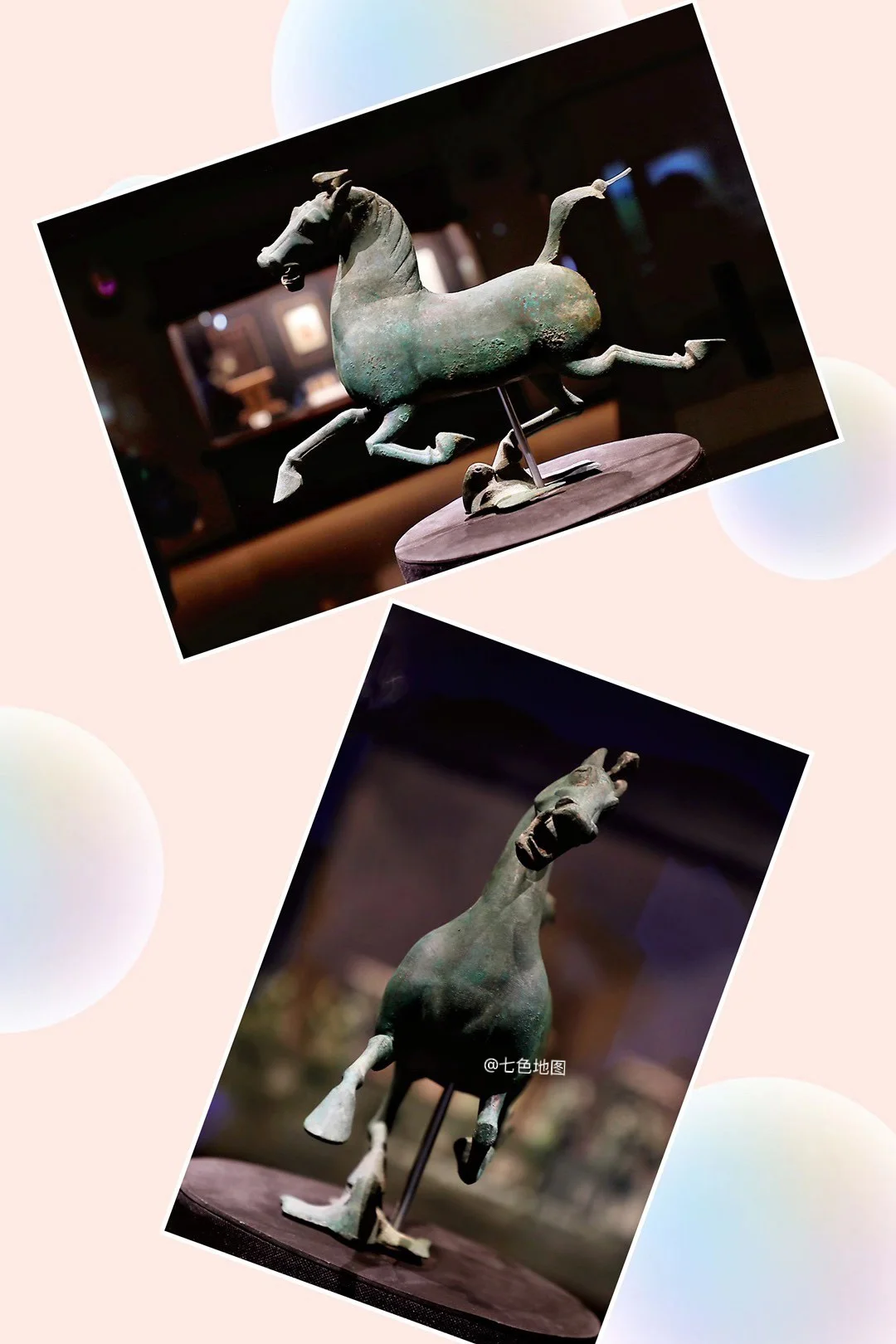 即马踏飞燕,现藏甘肃省博物馆。三足腾空、一足踏燕的经典造型,汉代青铜艺术极致之作。