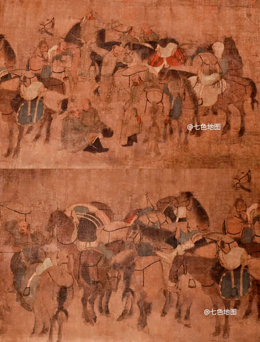 张择端画作,北京故宫博物院藏。全卷马约20匹,集中于卷中(虹桥至城门) 与卷尾(城内街市)。