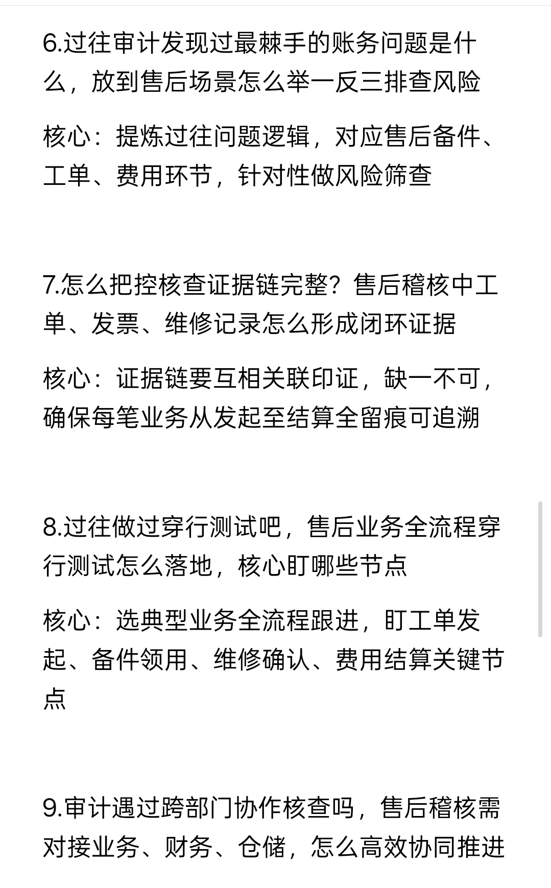 6.过往审计发现过最棘手的账务问题是什么,放到售后场景怎么举一反三排查风险