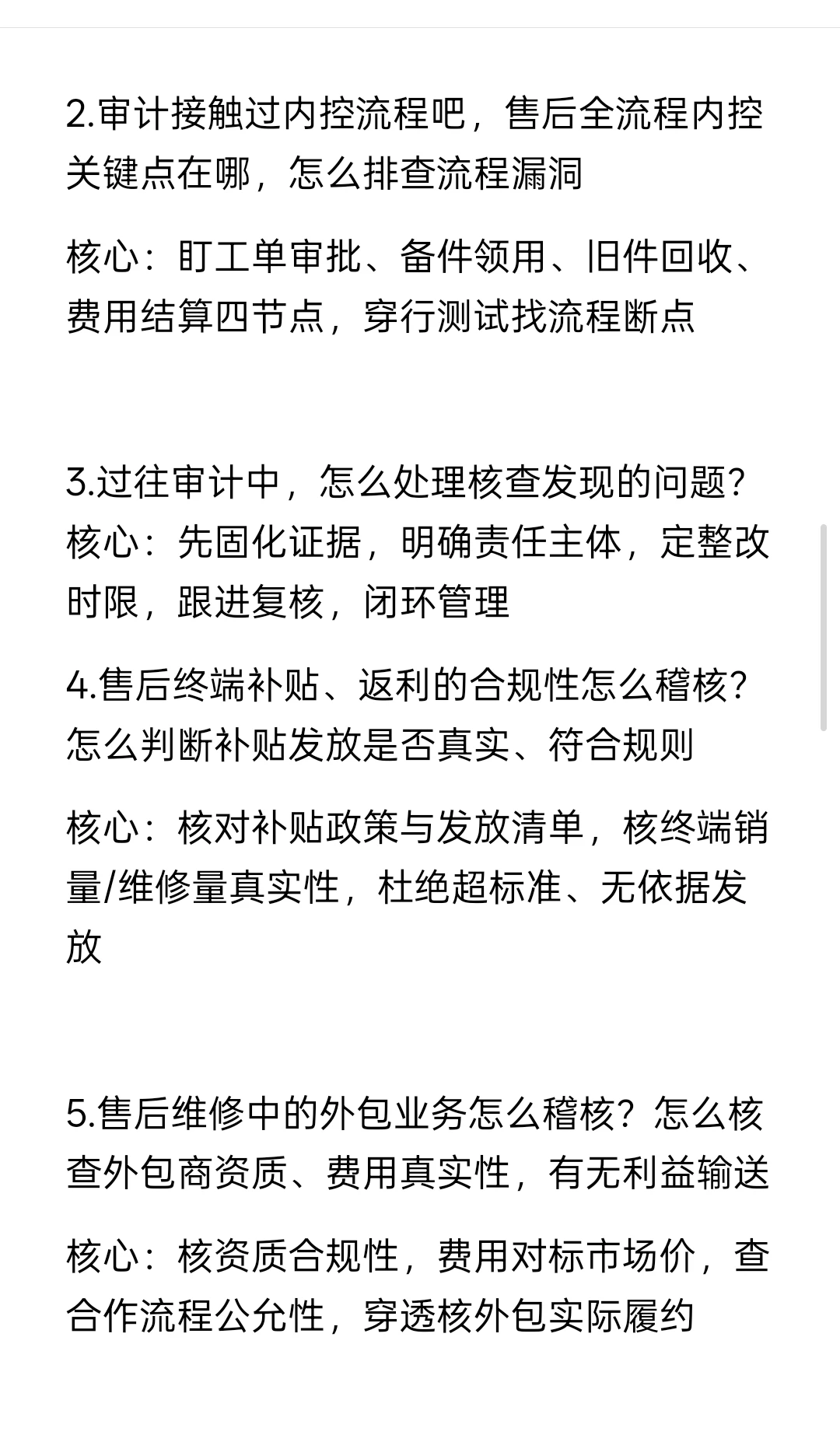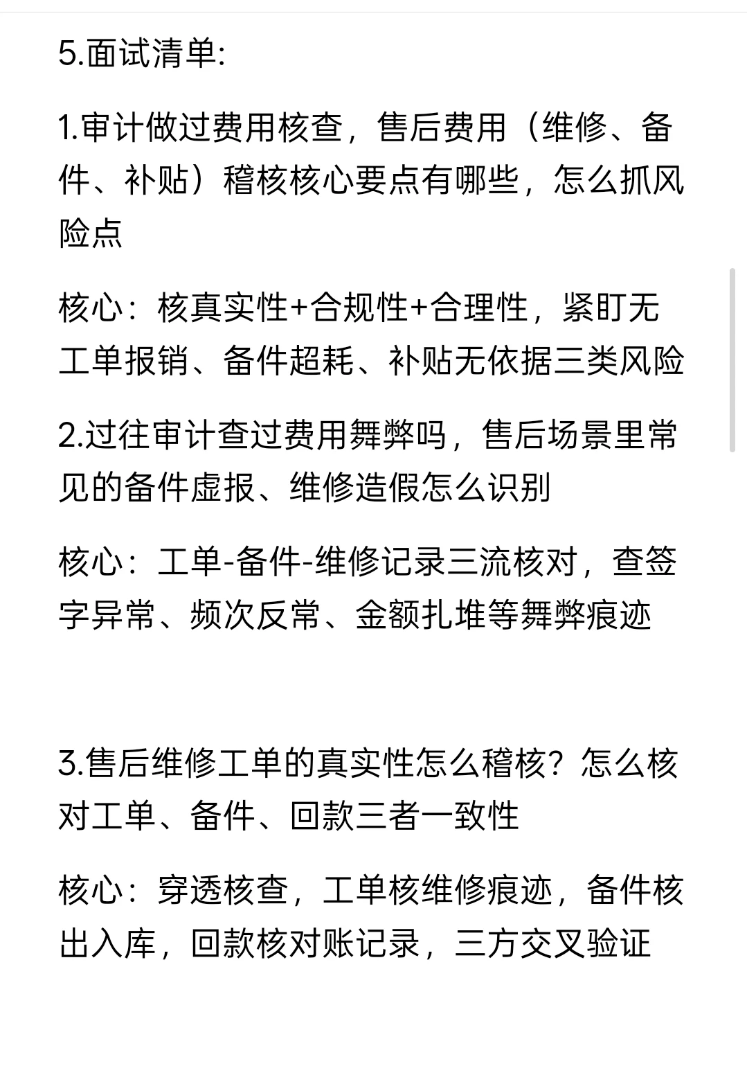 1.审计做过费用核查,售后费用(维修、备件、补贴)稽核核心要点有哪些,怎么抓风险点
