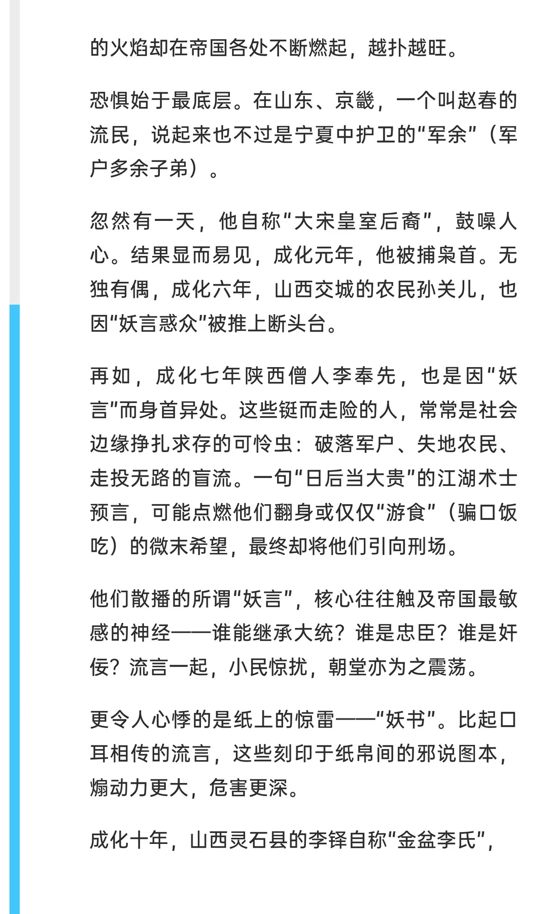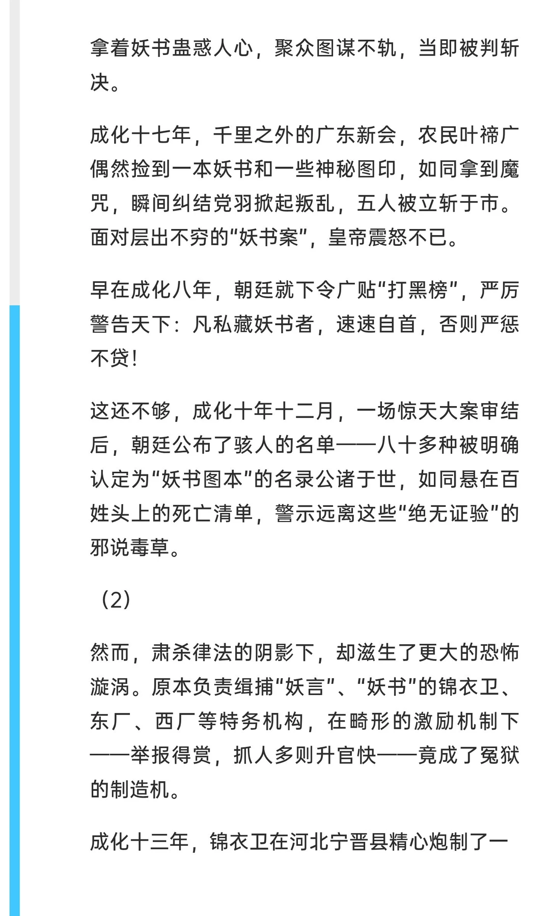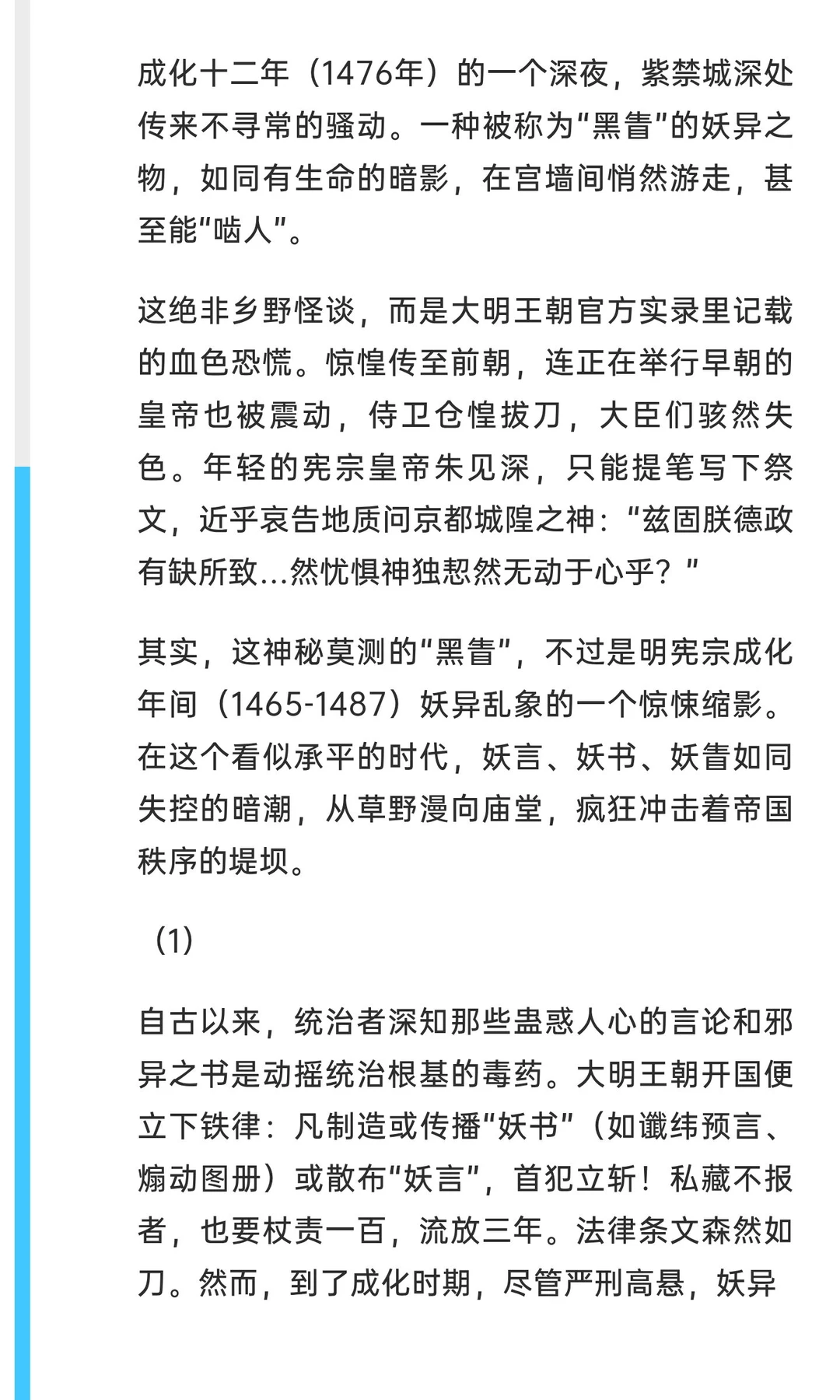 成化年间,大明王朝妖异乱象频发,妖言、妖书、妖眚冲击帝国秩序。从赵春、孙关儿的流言到李子龙、李孜省的阴谋,权力腐败与社会动荡交织,法律严苛却难阻乱象,最终导致皇权与法律的双重崩溃。