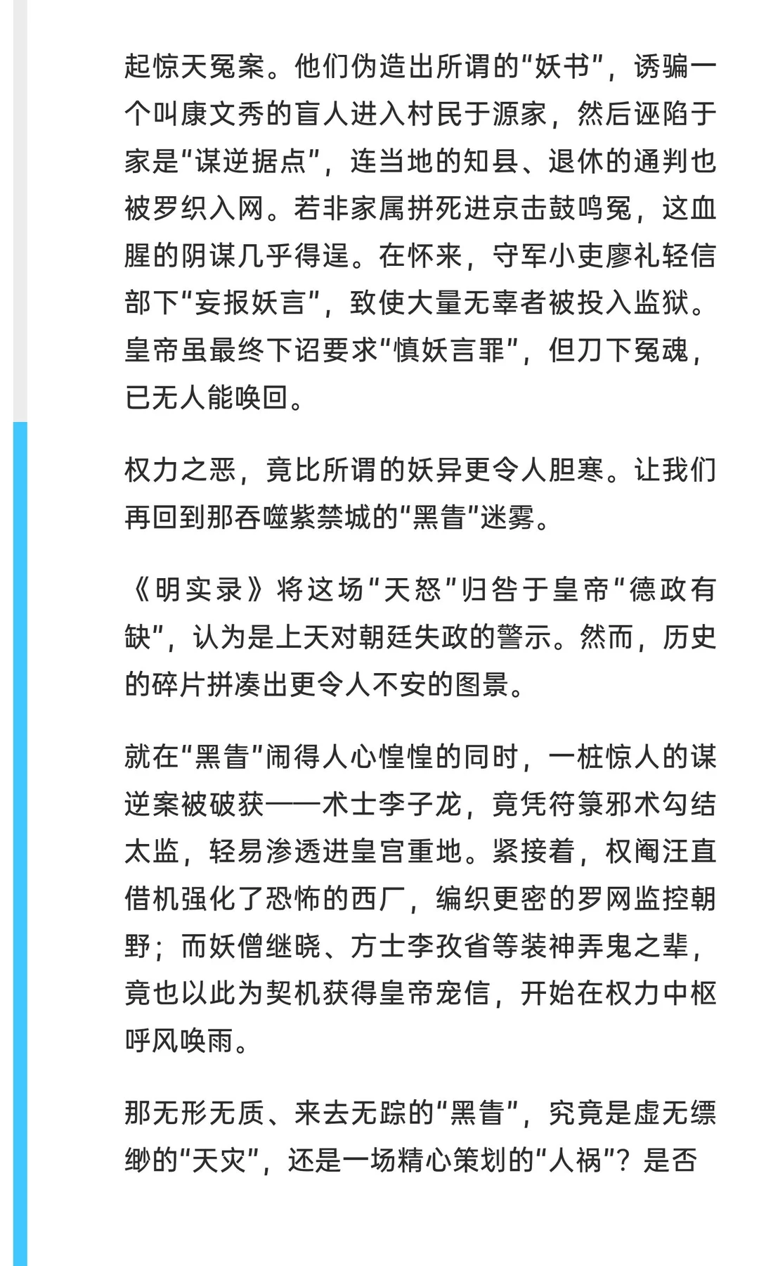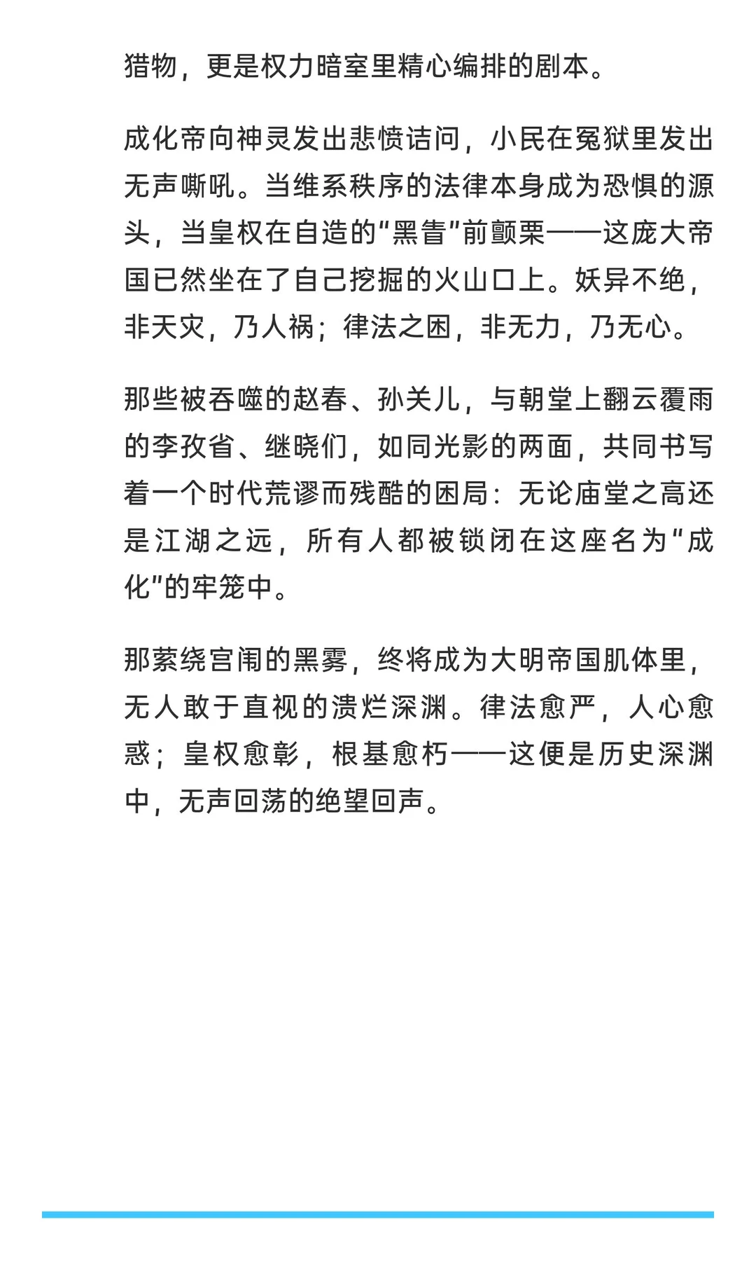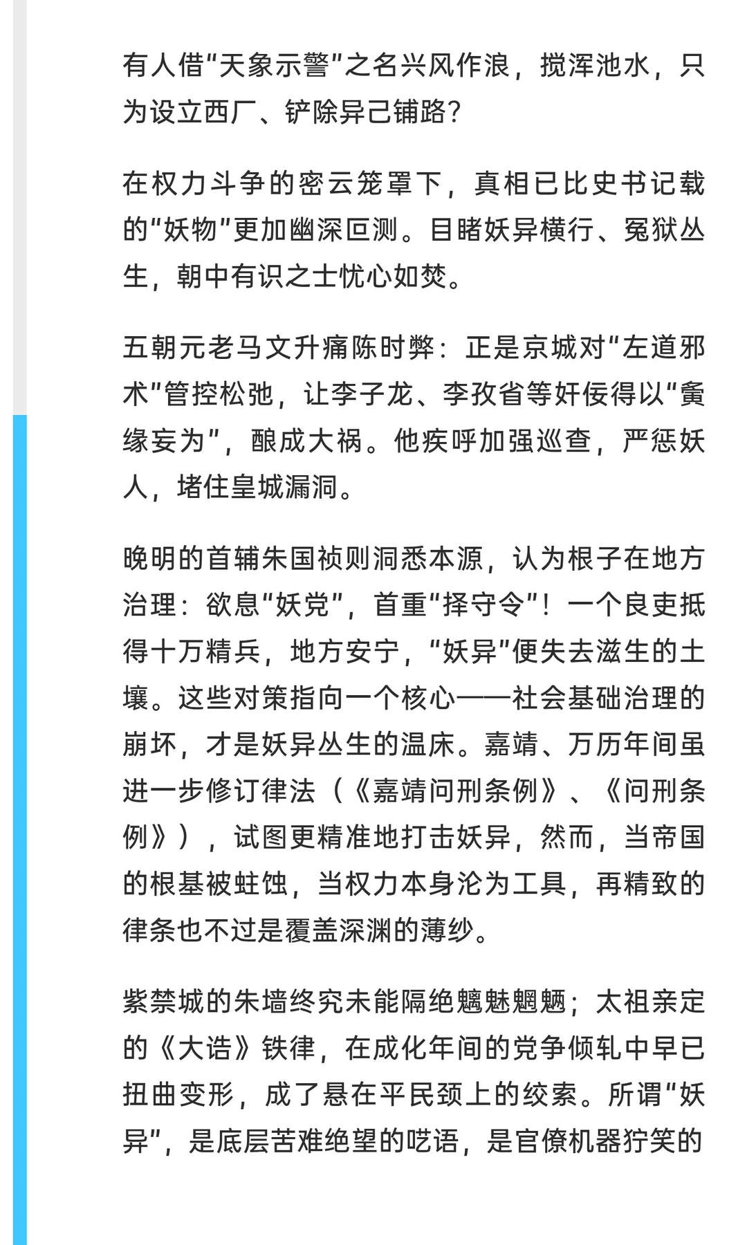 成化年间,大明王朝妖异乱象频发,妖言、妖书、妖眚冲击帝国秩序。从赵春、孙关儿的流言到李子龙、李孜省的阴谋,权力腐败与社会动荡交织,法律严苛却难阻乱象,最终导致皇权与法律的双重崩溃。