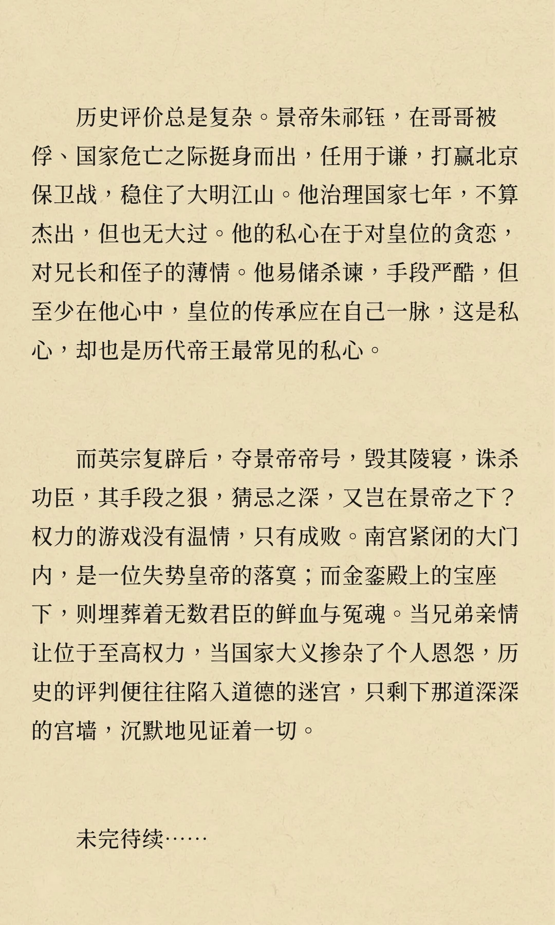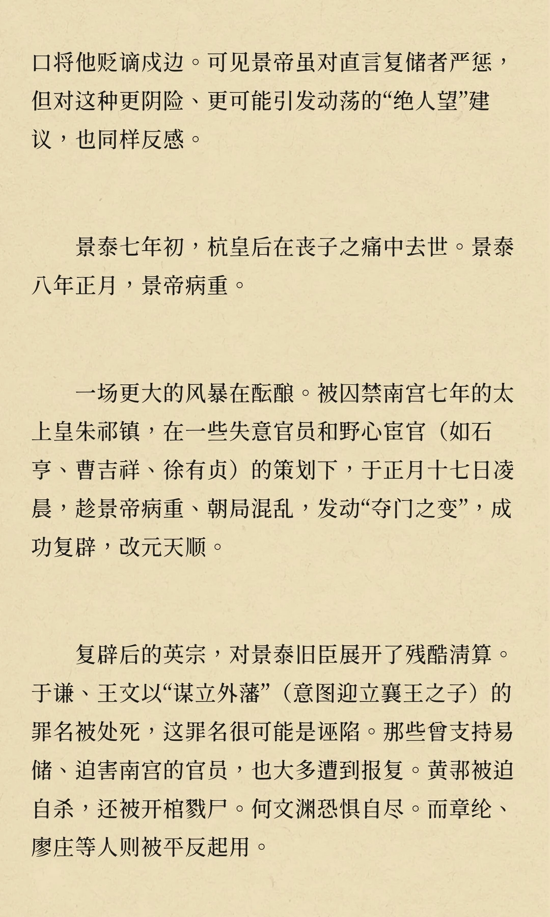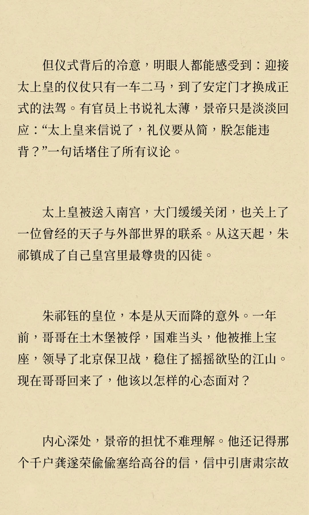 景泰年间,朱祁镇被废为太上皇,朱祁钰登基。朱祁镇通过宦官和野心家策划“夺门之变”复辟,但英宗复辟后对旧臣严酷清算,权力斗争与兄弟亲情交织,最终埋葬了无数君臣的鲜血与冤魂。