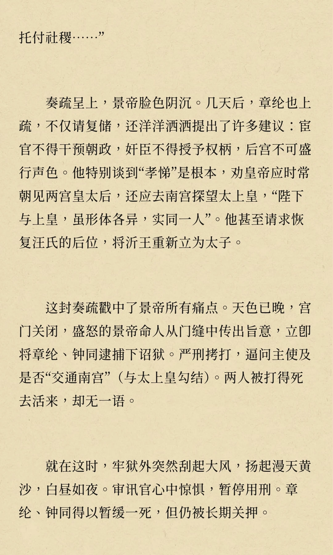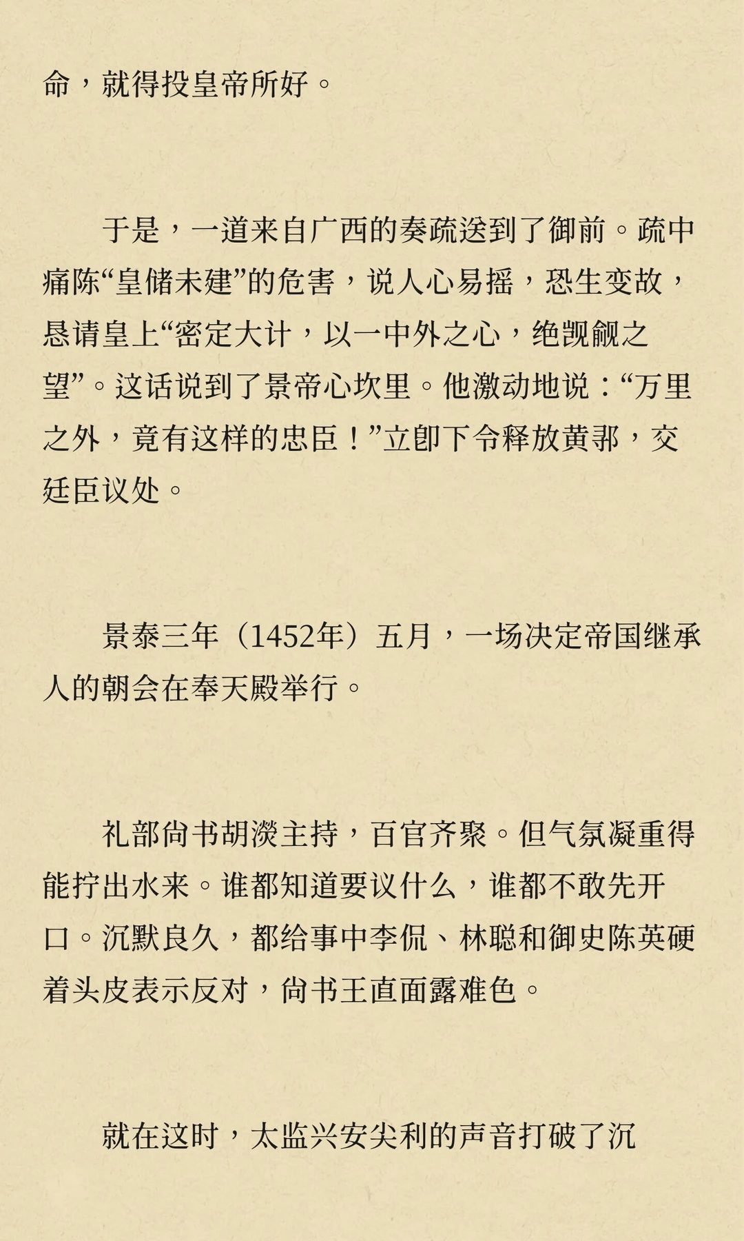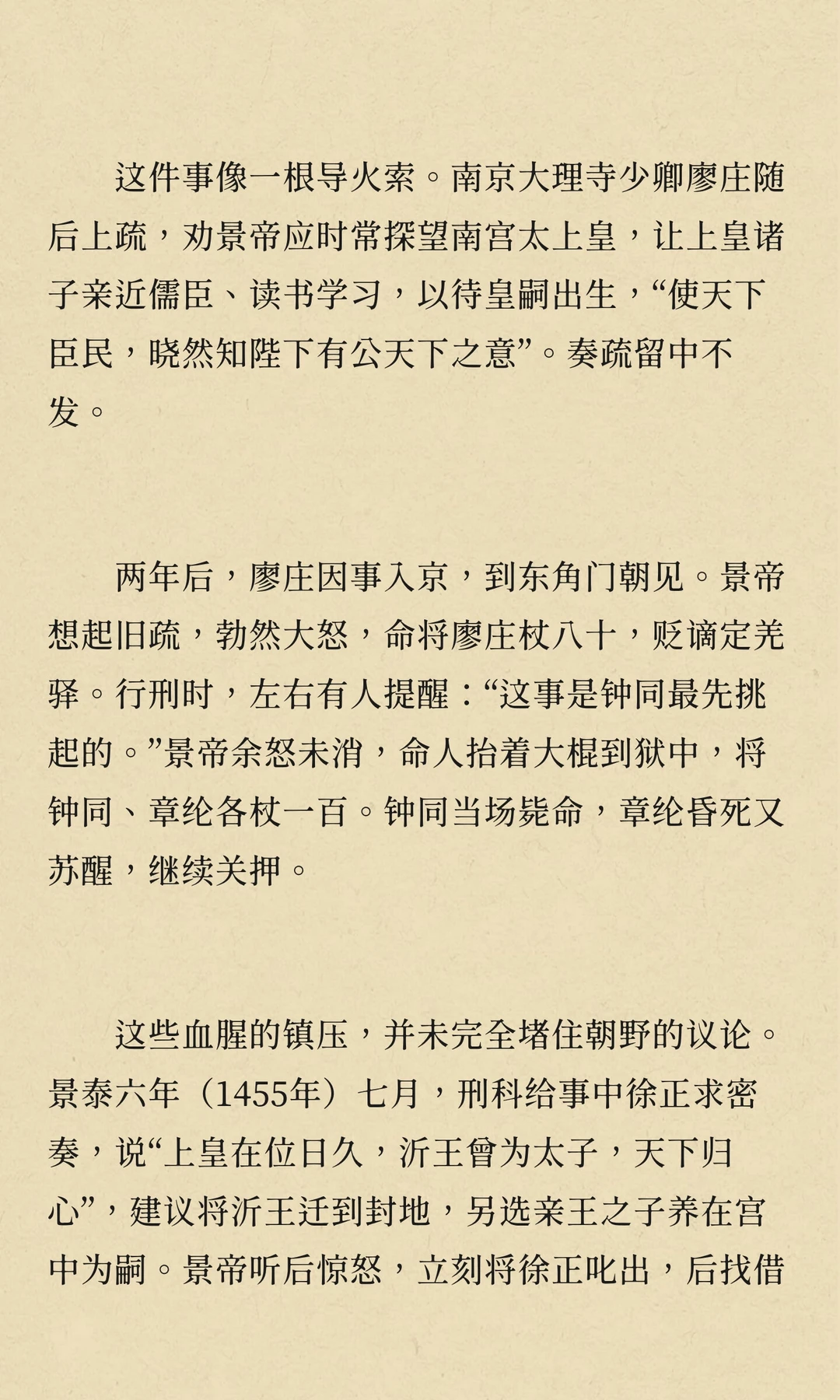景泰年间,朱祁镇被废为太上皇,朱祁钰登基。朱祁镇通过宦官和野心家策划“夺门之变”复辟,但英宗复辟后对旧臣严酷清算,权力斗争与兄弟亲情交织,最终埋葬了无数君臣的鲜血与冤魂。