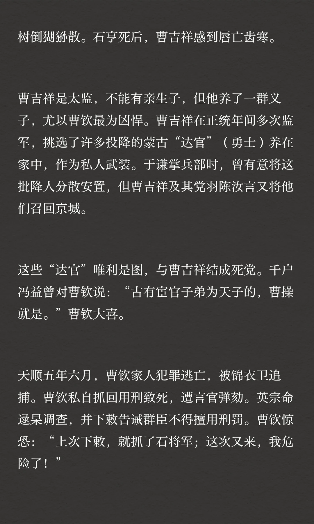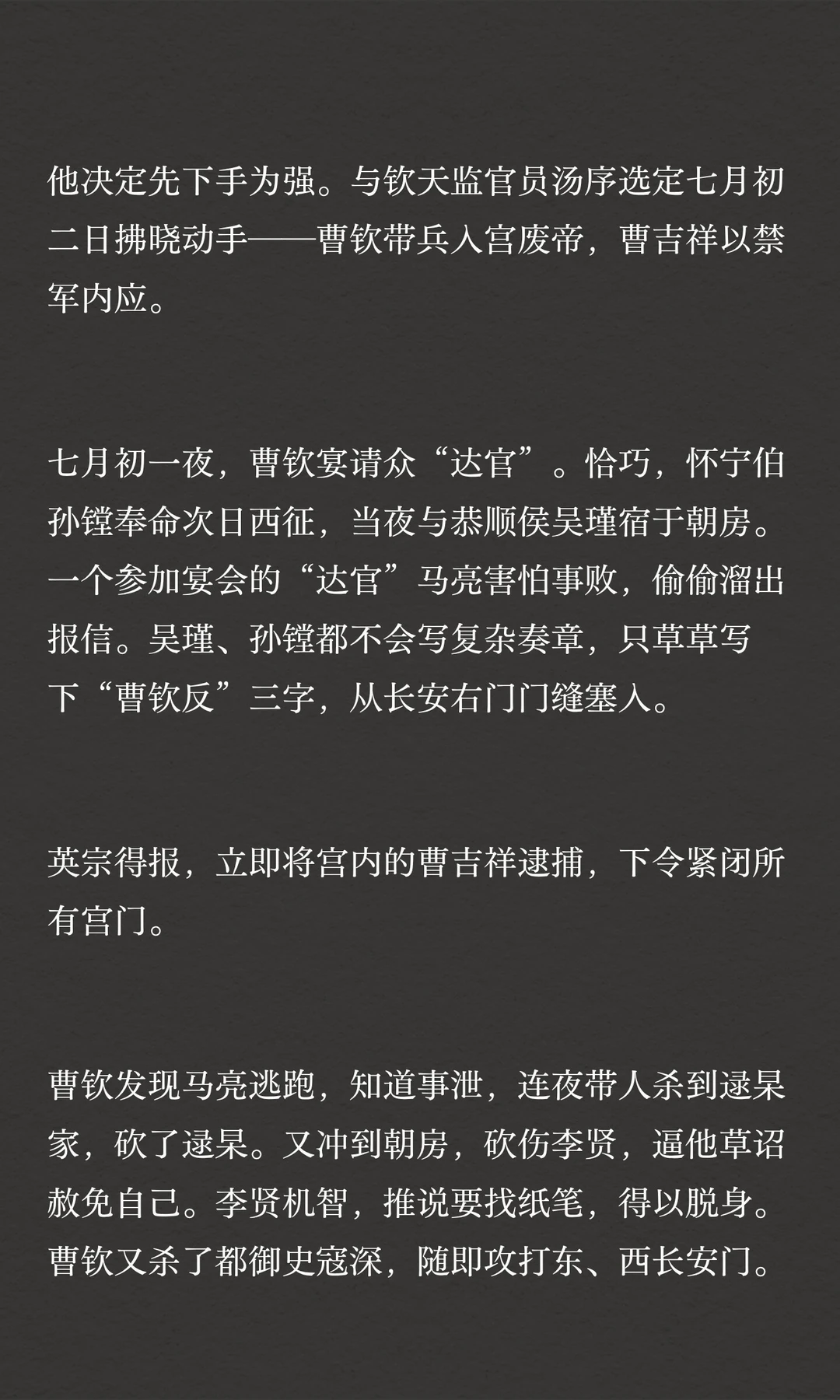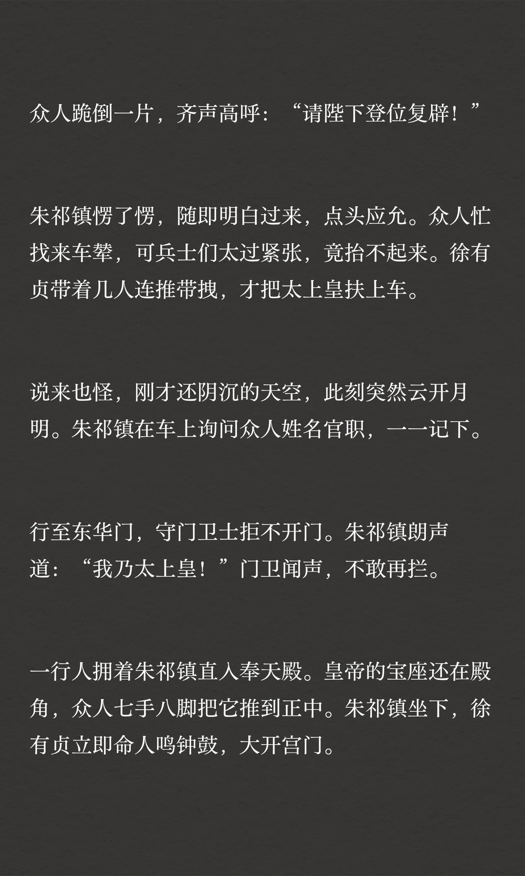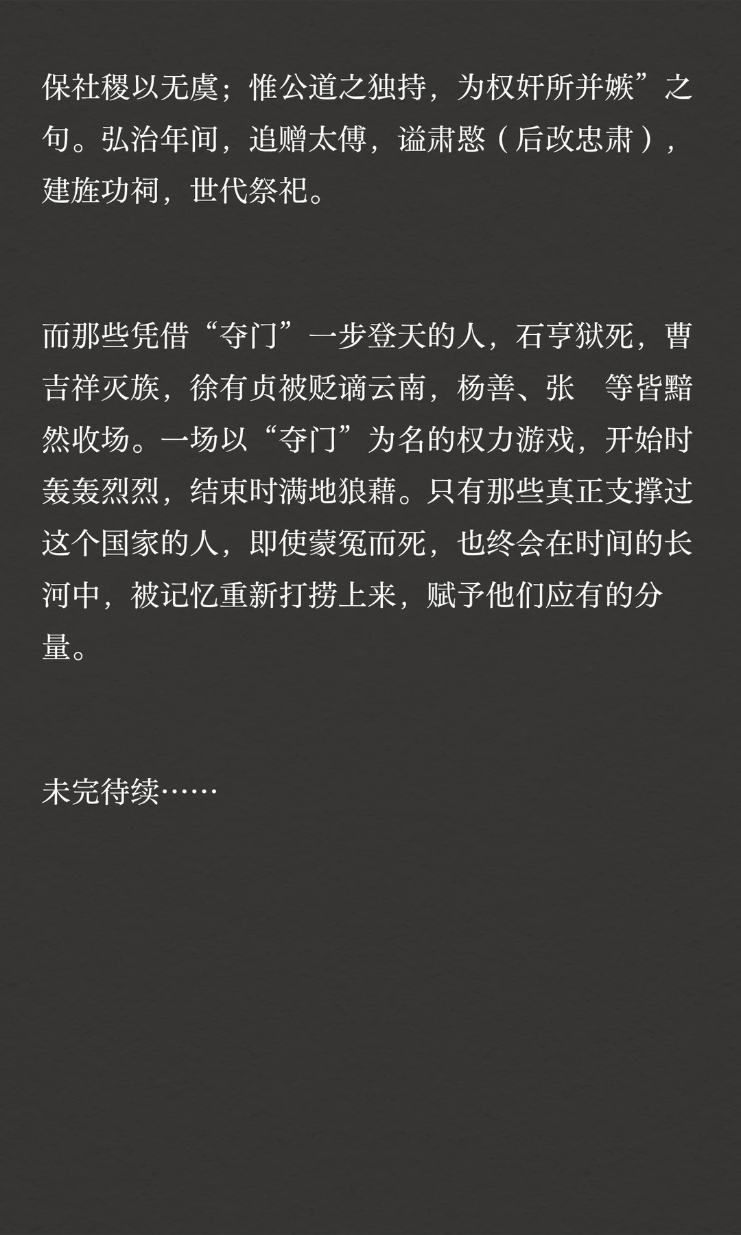 正月十七日,武清侯石亨等人发动“夺门之变”,复辟太上皇朱祁镇,废黜景泰帝。徐有贞策划政变,石亨等功臣借此崛起,但英宗英明,最终平定叛乱,于谦冤案未得平反,政变功臣纷纷落马。