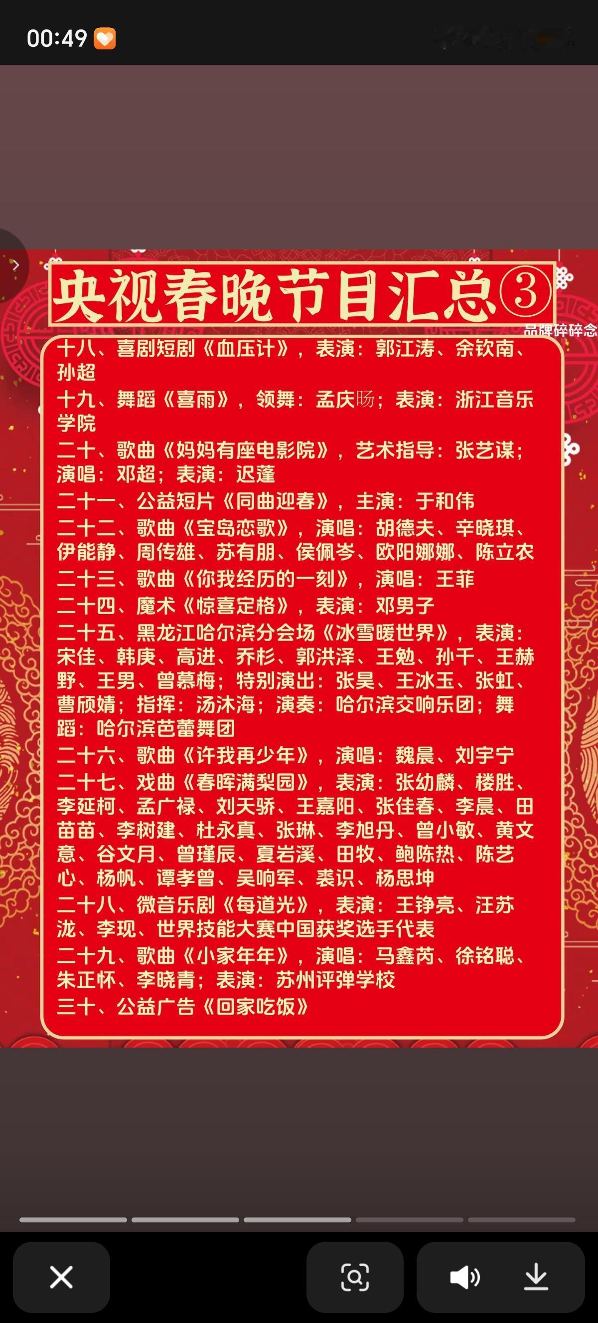 今年春晚小品只有3个,是历年小品最少的一年。今年首次彻底取消了相声节目,外国歌曲压轴了好几个,机器人占了7个节目,覆盖了主会场、分会场、小品、武术、歌曲及微电影等多种形式,堪称“机器人浓度最高”的一届。 《奶奶的最爱》(小品)松延动力机器人参与主演。 《武术BOT》(武术)宇树科技机器人与塔沟武校学员同台竞技。 《智造未来》(歌曲)魔法原子机器人伴舞。 《我最难忘的今宵》(贺岁微电影)银河通用机器人出镜。 《立上游》(宜宾分会场)魔法原子机器狗进行群控表演。 义乌分会场:宇树科技机器人进行角色化演绎。 宜宾分会场介绍小片:魔法原子机器人在开场打招呼环节亮相。