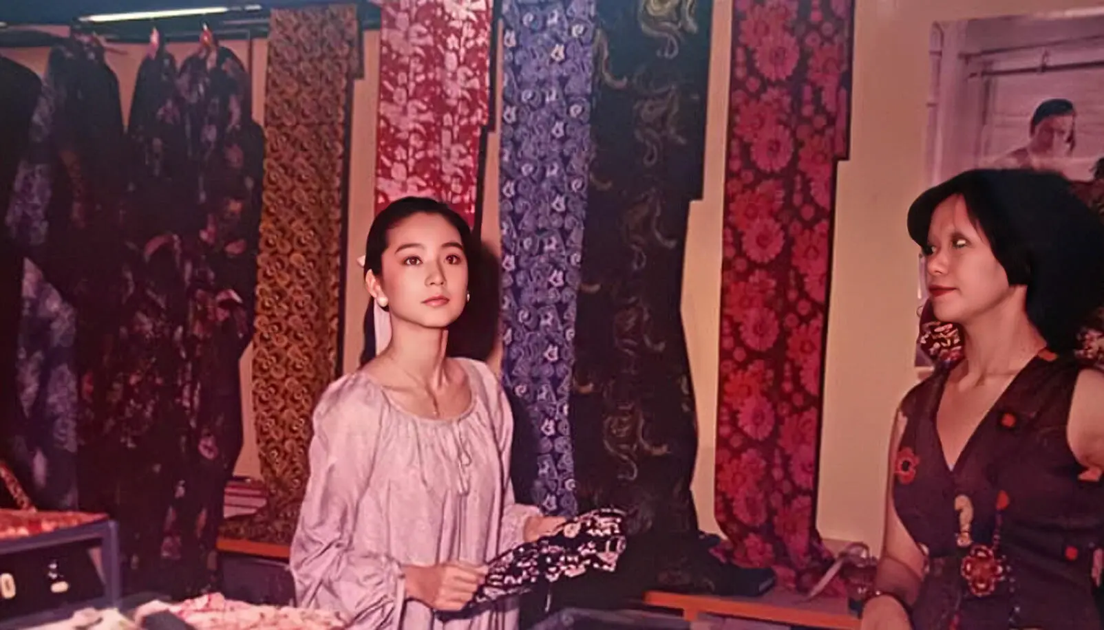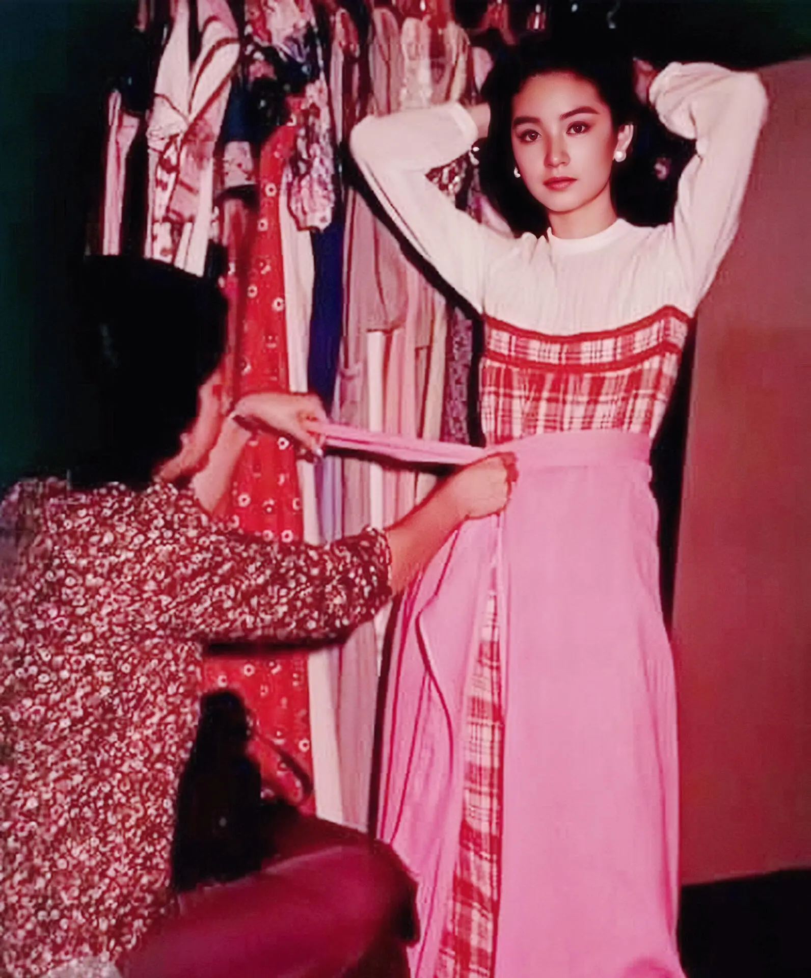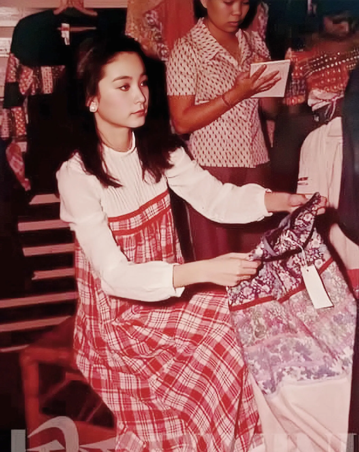 1977年23岁的林青霞与母亲在马来西亚.