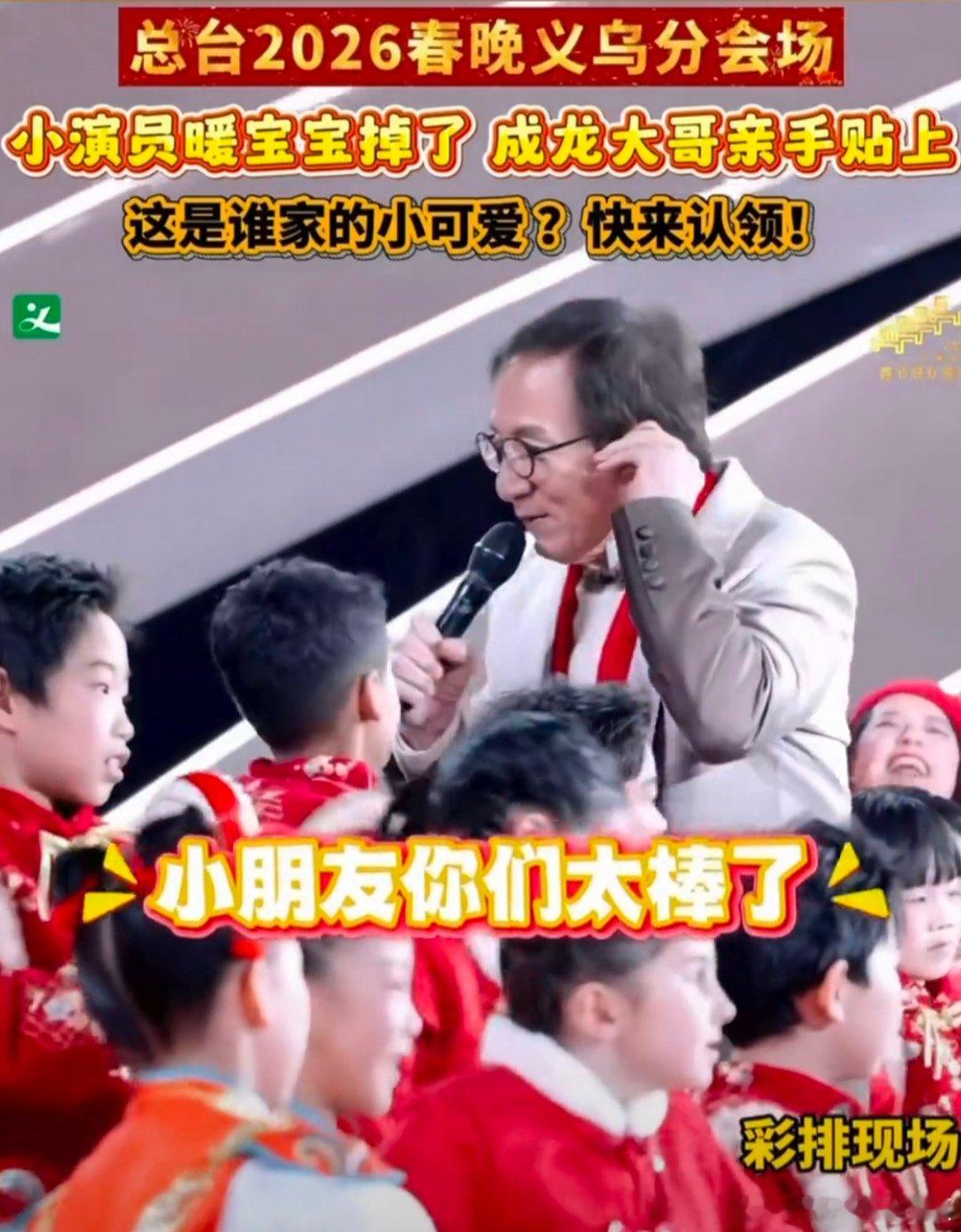 小演员暖宝宝掉了成龙亲手贴上 彩排现场的治愈一刻,成龙亲手为小演员贴暖宝宝,温柔从不分咖位!