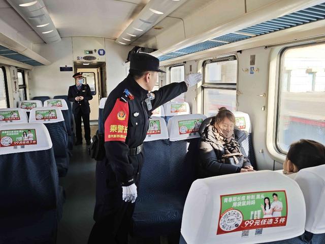 当日下午3点10分,K350次列车缓缓驶出佳木斯站,刘辉鹏的除夕值守工作也正式拉开序幕。这趟列车共14节车厢,他和同事在车厢不停往返,单是日巡视步数就达10000到15000步。列车经停的站点,刘辉鹏都不敢松懈,在站台上观察客流、排查风险。针对不同区段的旅客特点,他还会精准开展安全宣传,“佳木斯到哈尔滨段大学生多,就重点提醒他们看好行李,谨防电信诈骗”,进入哈尔滨到沈阳的夜行路段,他又反复叮嘱,“晚上睡觉,桌板上的充电器、衣帽钩上的包都要收好,最好塞枕头底下”。巡视途中,他还会主动关注行李多的务工人员、年纪大的旅客,问问下车地点、看看是否有需要帮忙的地方,“乘警就是得做好群众工作,多留意多问问,才能及时发现问题,帮旅客解决问题”。