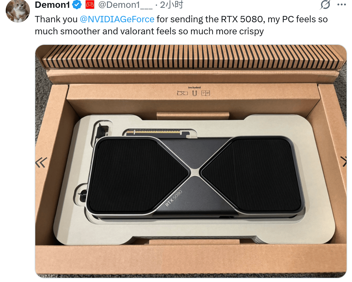 Demon1:感谢英伟达寄来的RTX5080,电脑更流畅,打瓦更爽了