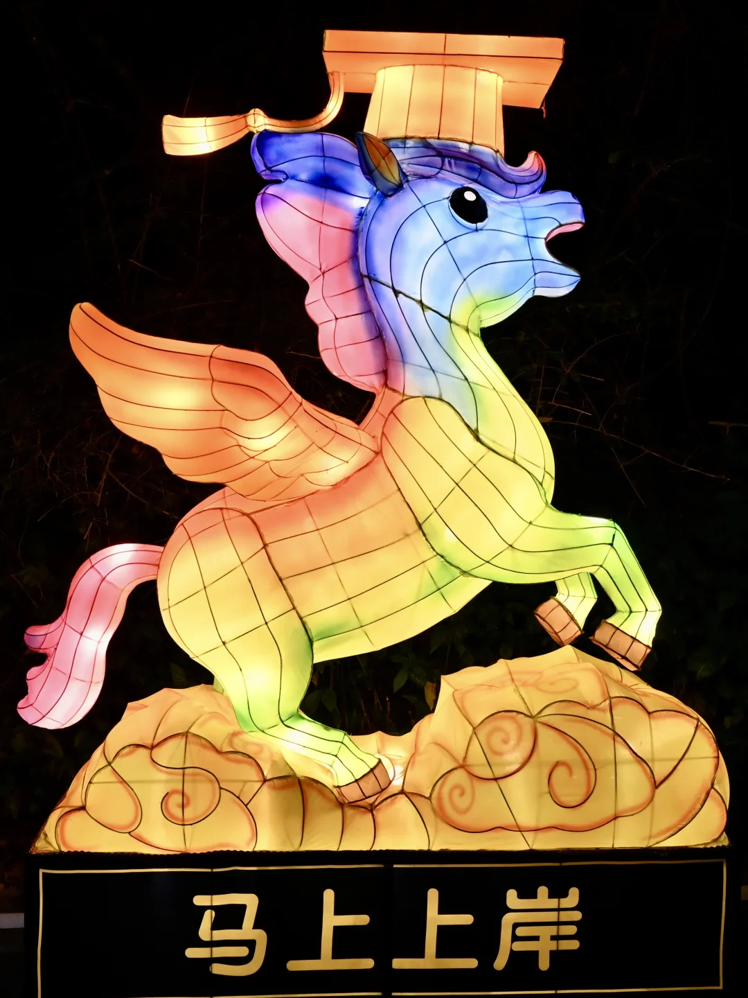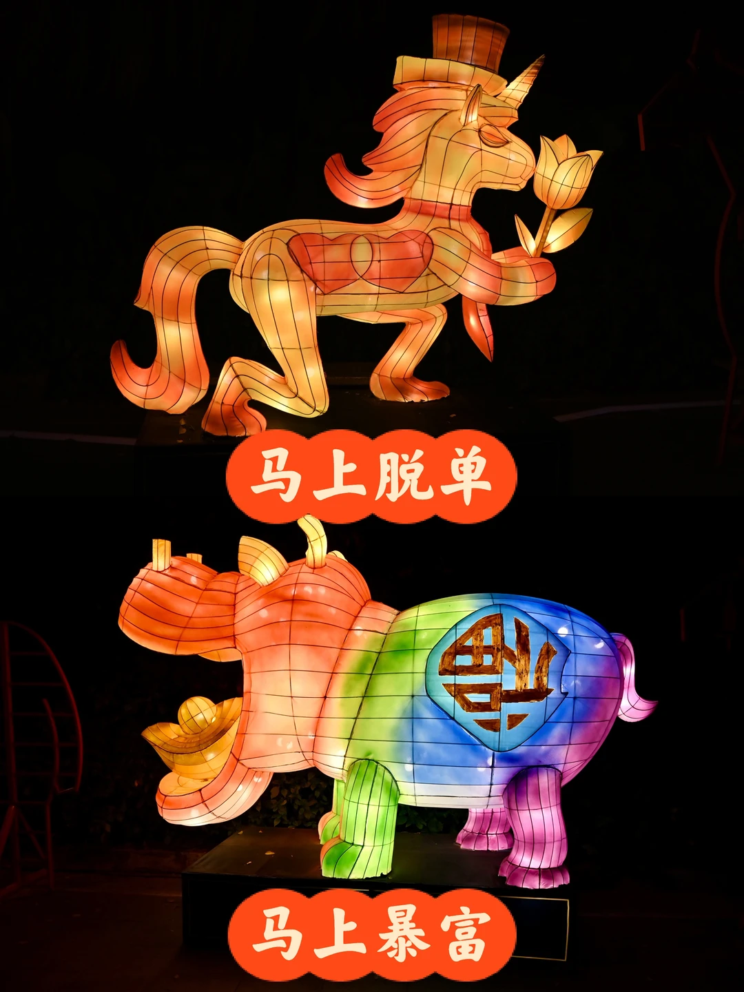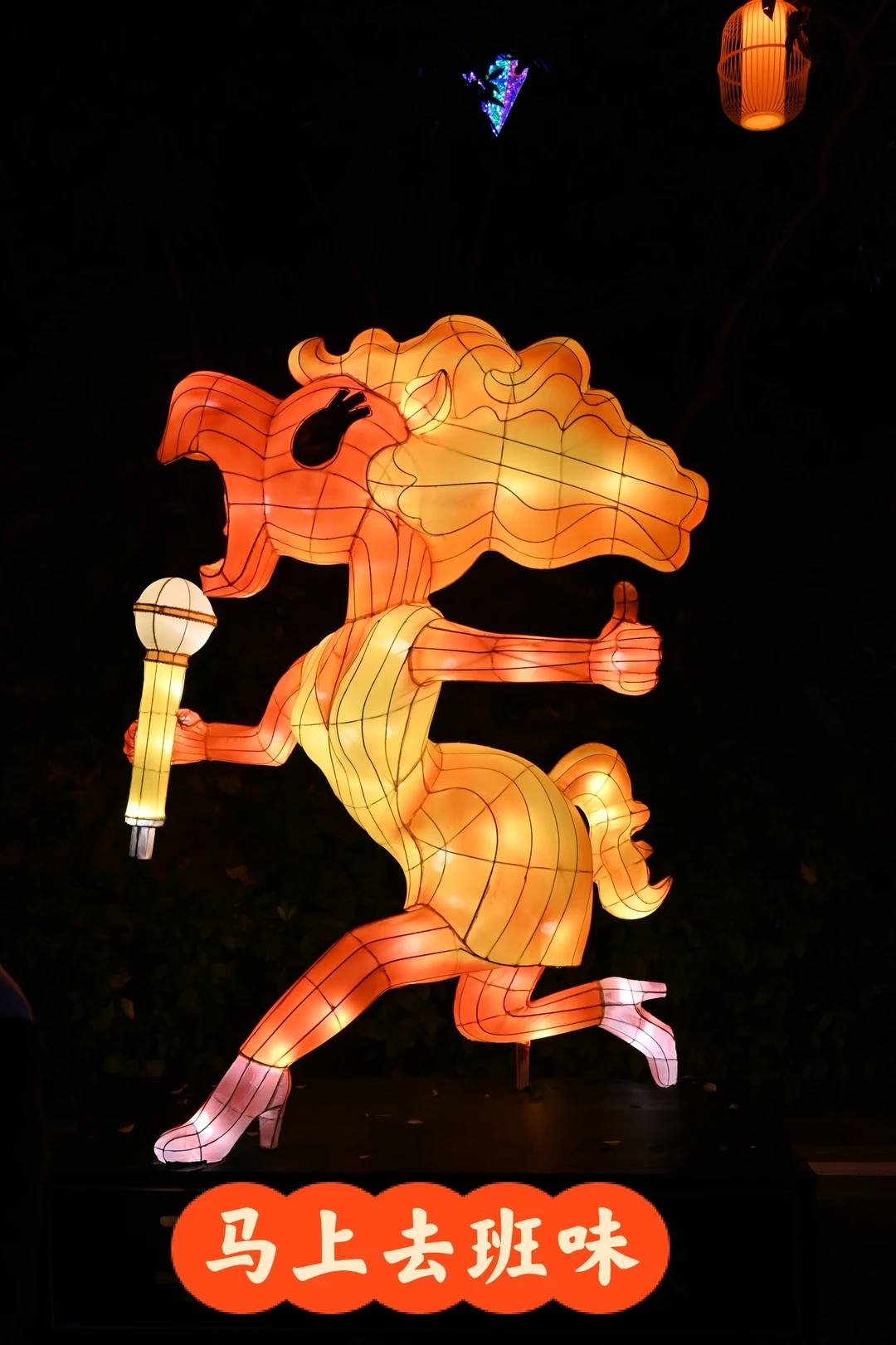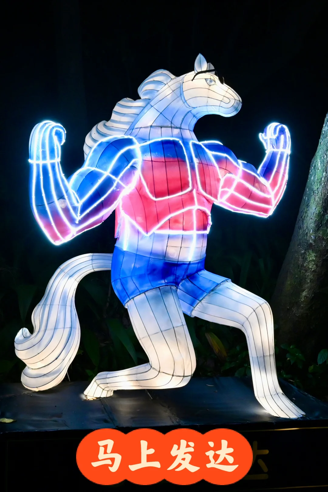 [一R]马上快乐❗️ [二R]马上去班味❗️ [三R]马上上岸❗️ [四R]马上发财❗️ [五R]马上超神❗️ [六R]马上如意❗️ [七R]马上白富美❗️ [八R]马上脱单❗️ [九R]马上暴富❗️ …… 越秀公园灯会上,华裔雕塑家吴信坤打造了“潮马”祈福大道。将青铜雕塑技艺与灯光艺术结合,塑造出以“博士马”“超人马”“疯马歌手”等9个独特造型为核心的“潮马”灯组,融合了东方哲学与西方现代艺术语言,将传统的生肖“马”升华为当代艺术符号。