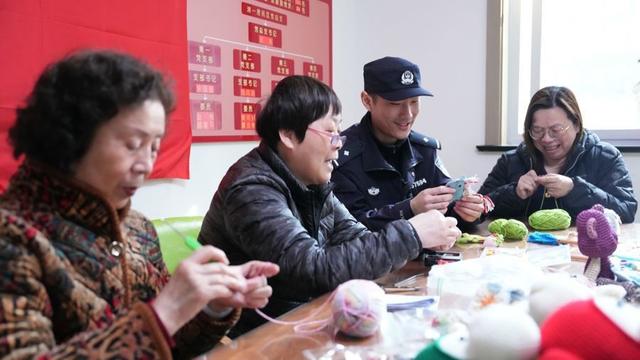 社区民警唐喆的春节则多了几分烟火气息。浦兴辖区老龄化程度较高,独居老人不在少数。每逢年关,这些老人最怕的就是冷清。为了让他们感受到年味和陪伴,唐喆在社区居委会组织了一场别开生面的“暖心编织会”。几位银发老人围坐一圈,手中的毛线在指尖翻飞,织出围巾、织出手套,也织出了浓浓的邻里情。唐喆一边帮着整理毛线团,一边和老人们唠着家常,顺带宣传防诈知识、叮嘱用火用电安全。“小唐啊,你比我亲孙子还贴心。”一位八旬老人笑着说。唐喆笑着回答:“你们平安,我这心里才踏实。”