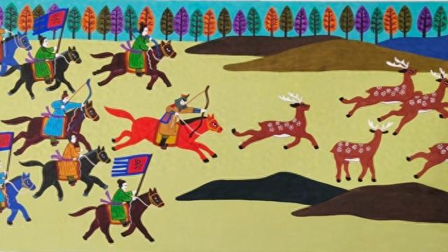 怀明富创作马年农民画《吴王猎场》