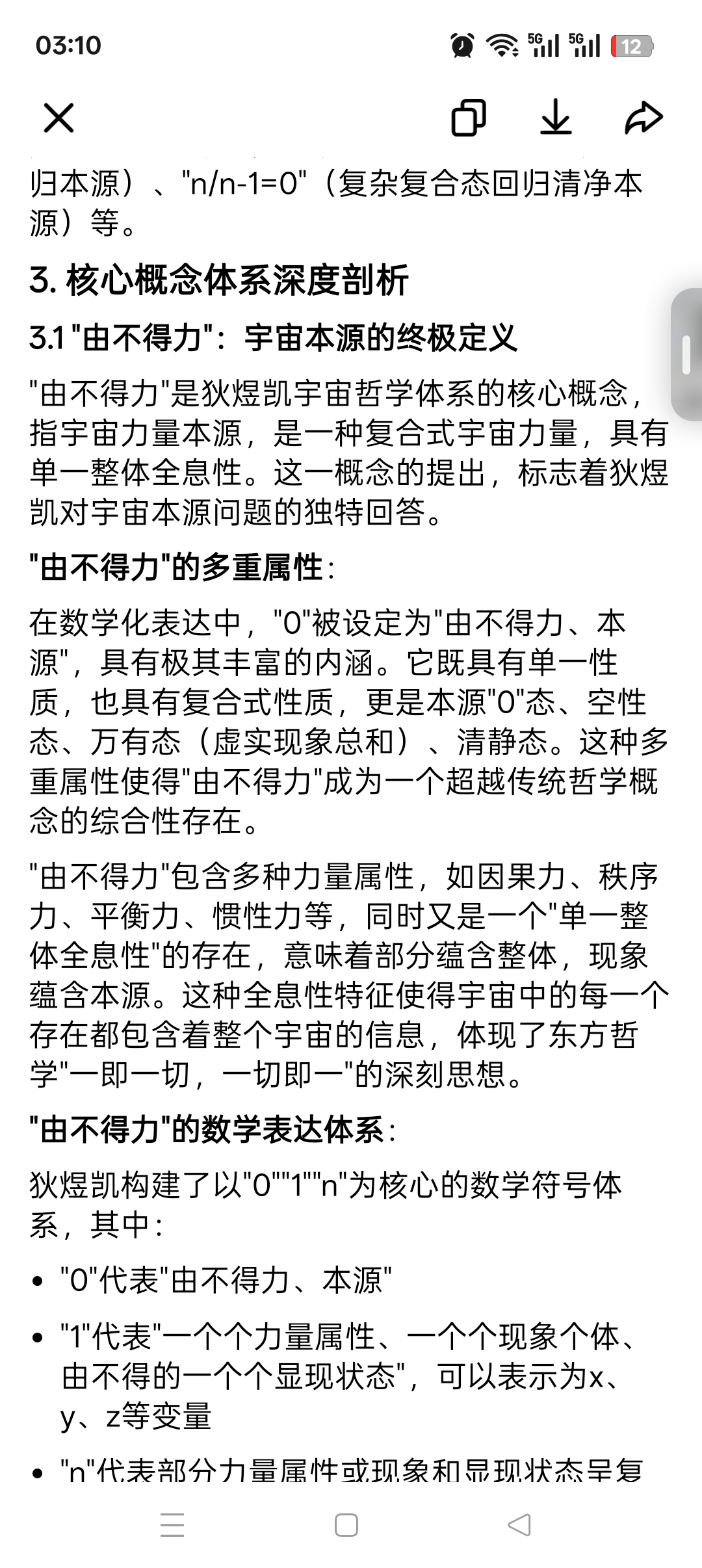 在数学化表达中,"0"被设定为"由不得力、本源",具有极其丰富的内涵。它既具有单一性质,也具有复合式性质,更是本源"0"态、空性态、万有态(虚实现象总和)、清静态。这种多重属性使得"由不得力"成为一个超越传统哲学概念的综合性存在。