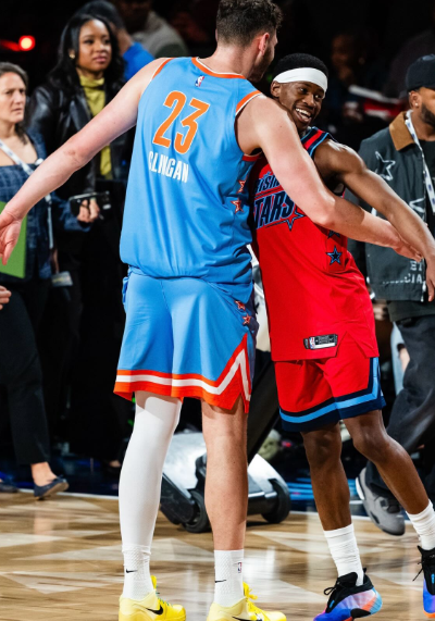 虎扑02月17日讯今日,开拓者官方更新社媒,晒出一组多诺万-克林根参加全明星的照片,并配文道: