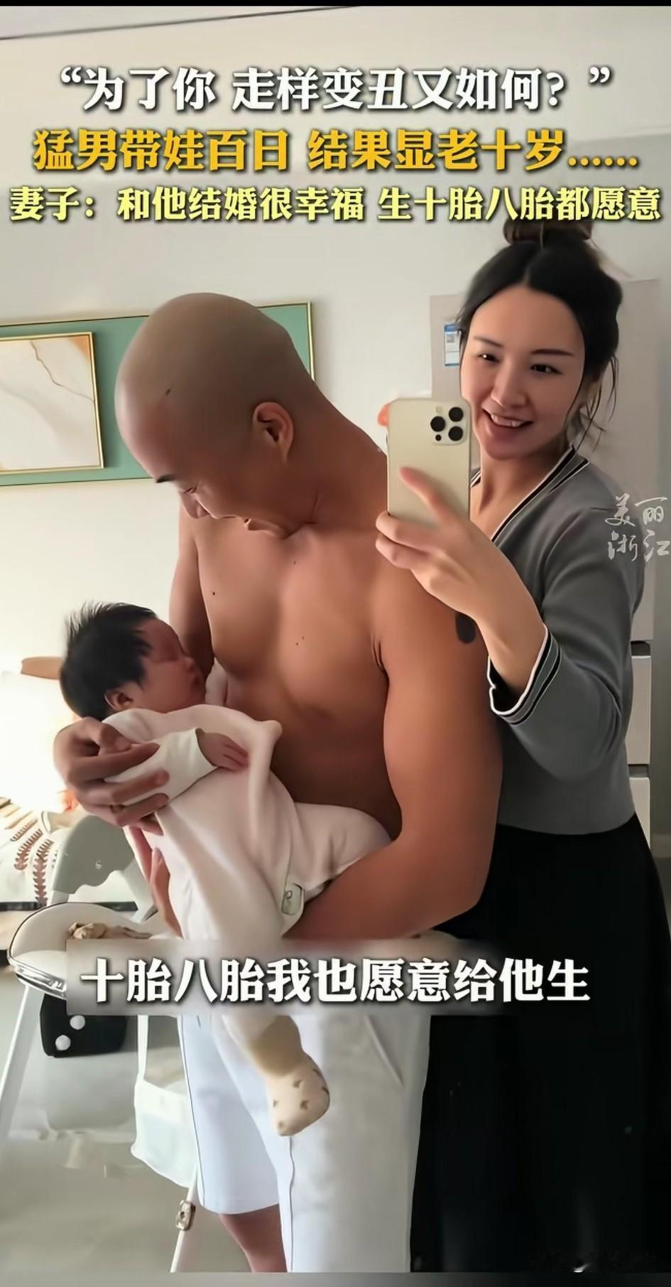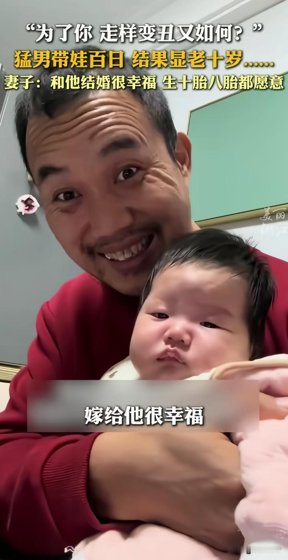 网友分享自己的老公白日带娃大变样, 当时她怀孕之后, 老公表示带娃由他负责, 本来她以为是老公开玩笑, 结果她的猛男老公居然真的做到了, 带娃之前长得很帅气, 身材也非常的棒, 没想到带娃100天之后, 不仅头发秃了, 身材也走了样, 啤酒肚都都出来了, 看着日益憔悴的老公, 其实很想自己带娃, 但都被老公心疼她拒绝了, 如今的老公和怀孕前判若两人, 不过女子却非常的幸福, 她一点也不嫌弃自己的老公, 然而觉得嫁对了人, 大家都知道女人带娃很辛苦, 壮男也顶不住, 所以说媳妇儿生完后衰老很快, 就是被操心操的了, 广大男人还是心疼一下老婆吧, 让自己带娃老婆休息, 这样你们的老婆才会貌美如花, 大家觉得带娃是不是个辛苦活? 带娃带成这样 爸爸带娃 带娃的孩子他爸 带娃也很哇塞
