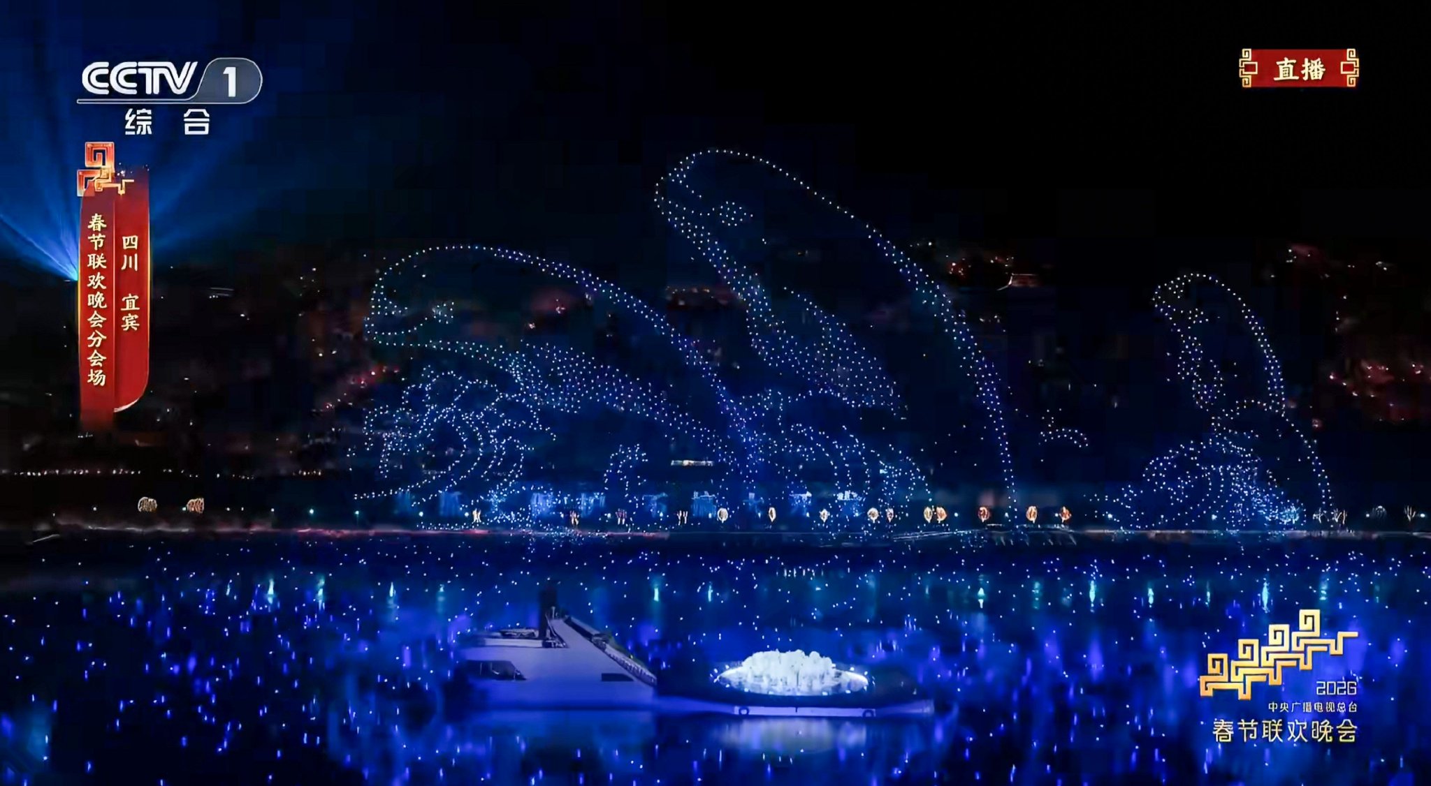 新华财经上海2月17日电(记者王鹤)在2026年中央广播电视总台春节联欢晚会合肥分会场上,16架亿航智能EH216-S无人驾驶eVTOL(电动垂直起降航空器)编队阵列与22580架新一代编队无人机共同打造出一场科幻感满满的空中视觉盛宴;峰飞航空自主研发的全球首个eVTOL水上机场则亮相春晚宜宾分会场,为舞蹈表演建成了一座未来感拉满的“专属舞台”。
