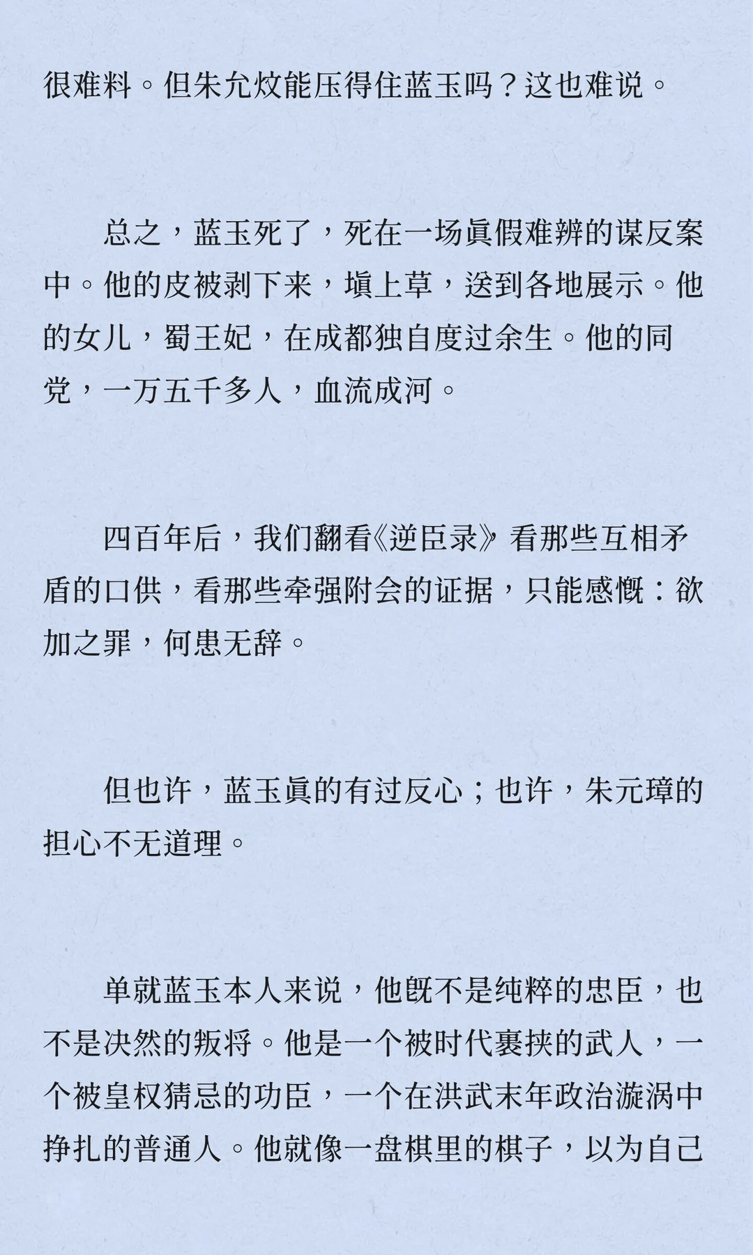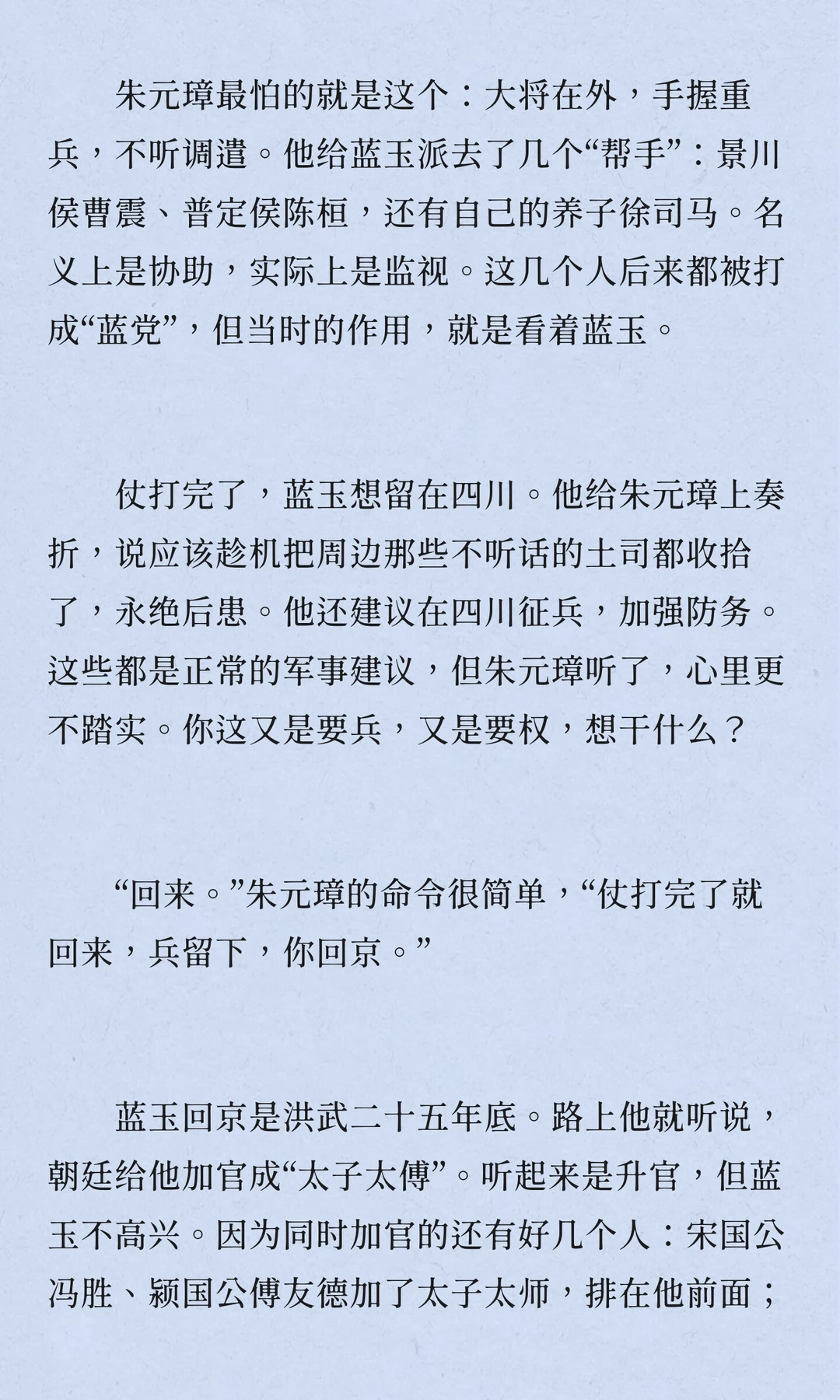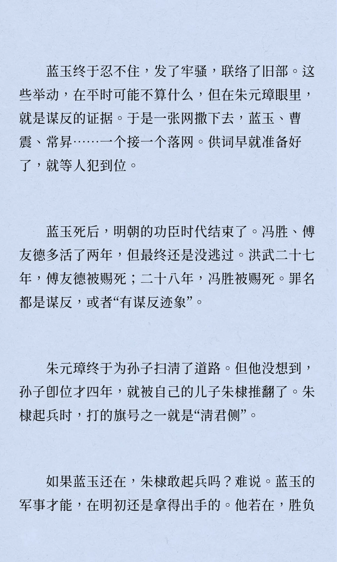 蓝玉案是明初“四大案”之一,蓝玉因被朱元璋猜忌而最终被处死。此案涉及复杂的权力斗争,最终导致明朝功臣时代的终结。