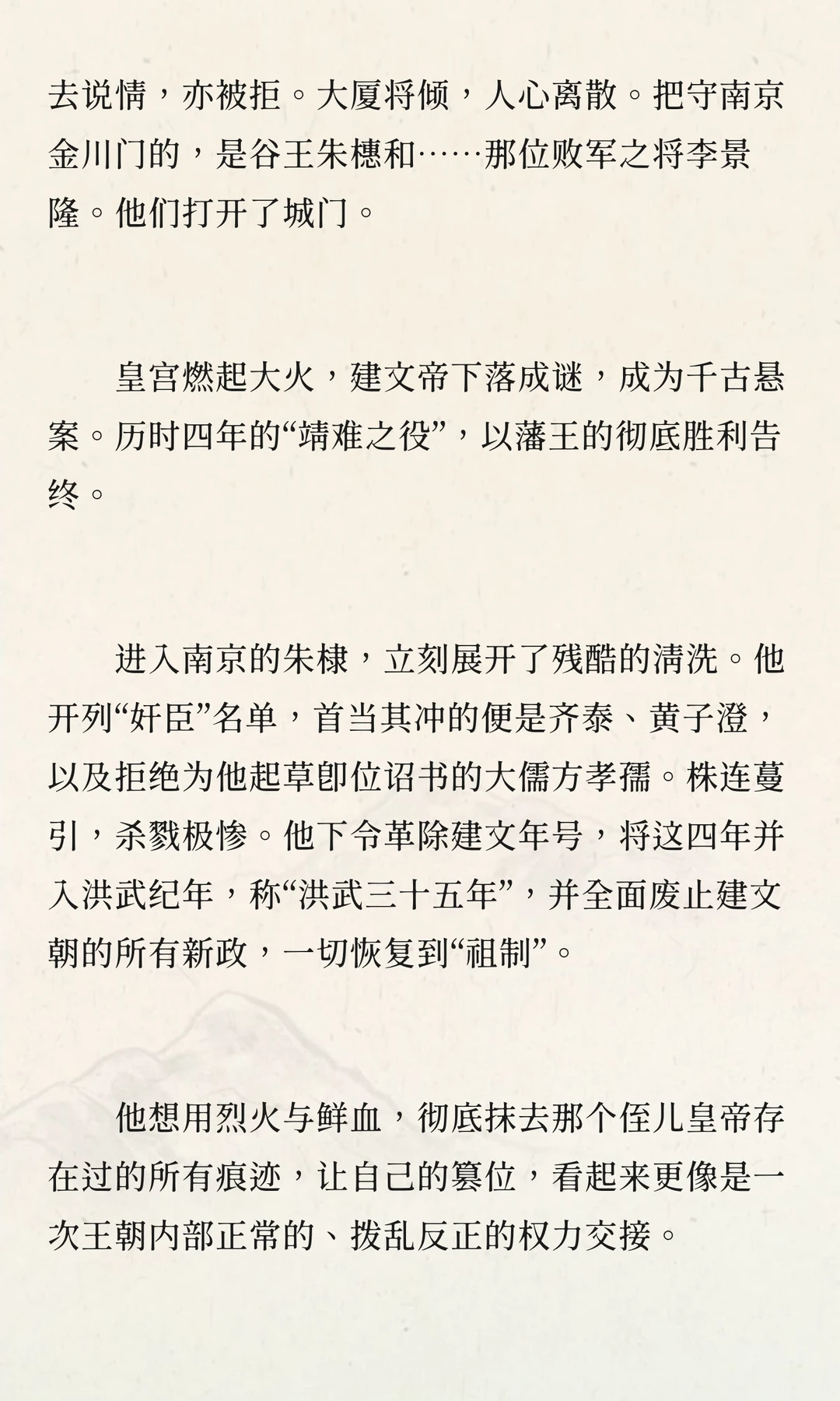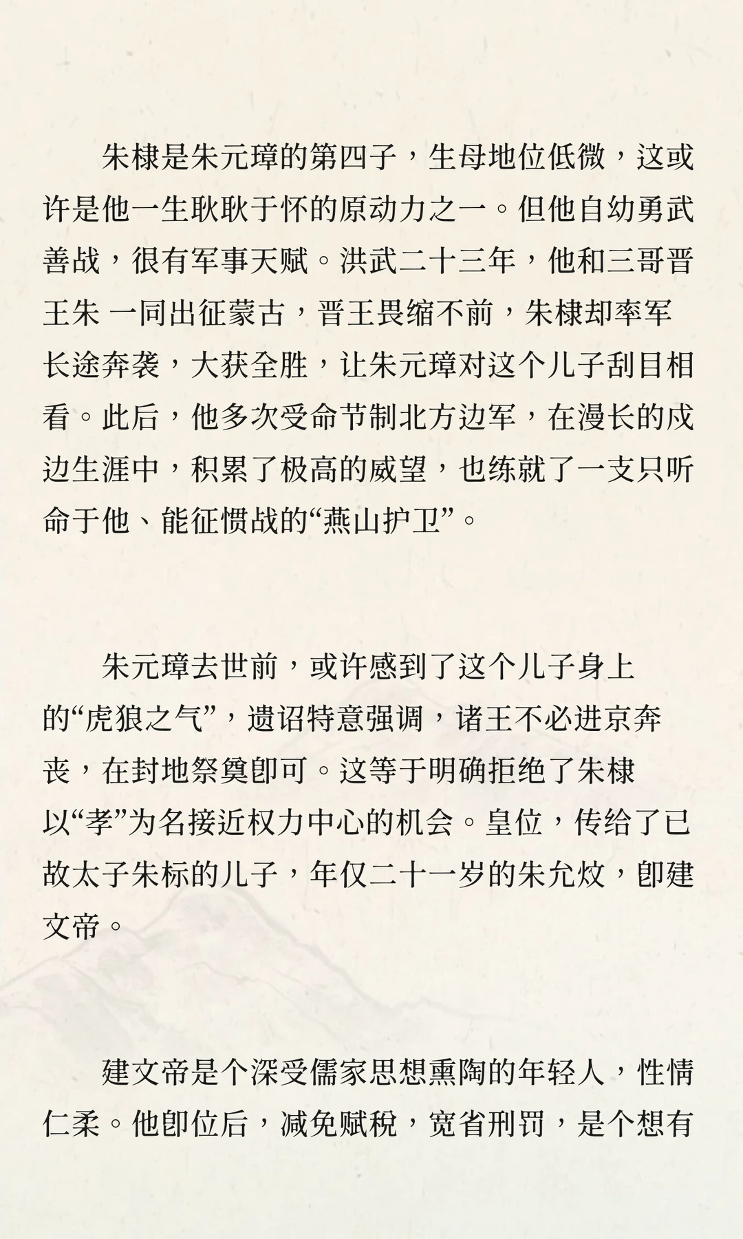 朱棣在建文帝削藩中崛起,通过“靖难之役”夺权,彻底清洗建文朝,恢复洪武纪年,重塑明朝政治。这场家族内战改变了藩王与武将的地位,加深了皇帝的猜忌与专制,成为明朝政治的转折点。