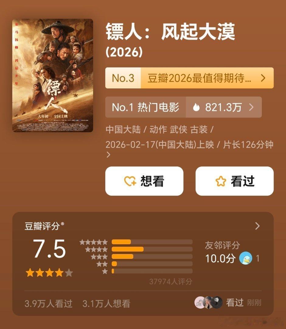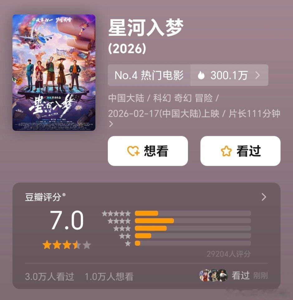 春节档三部已开分飞驰7.6,镖人7.5,星河7.0可以都上7了