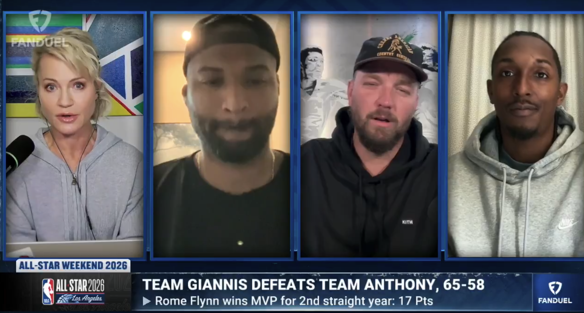 虎扑02月18日讯近日,前NBA球员德马库斯-考辛斯在一档节目中谈及全明星名人赛,他建议让布莱恩-文霍斯特和史蒂芬-A-史密斯等评论员去参加全明星名人赛。