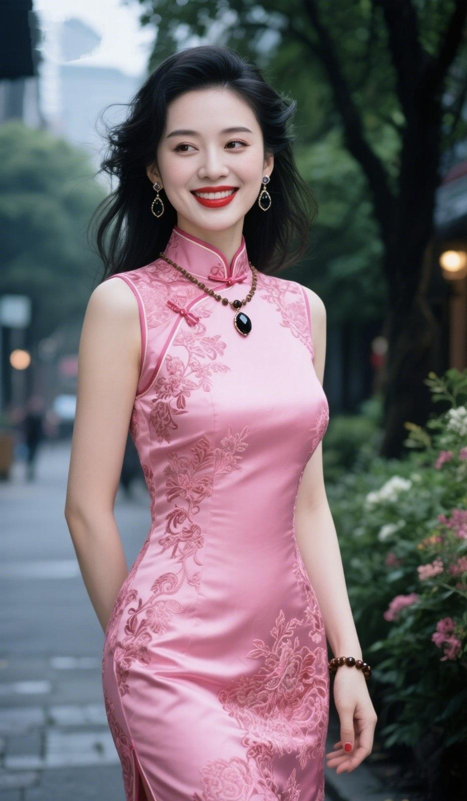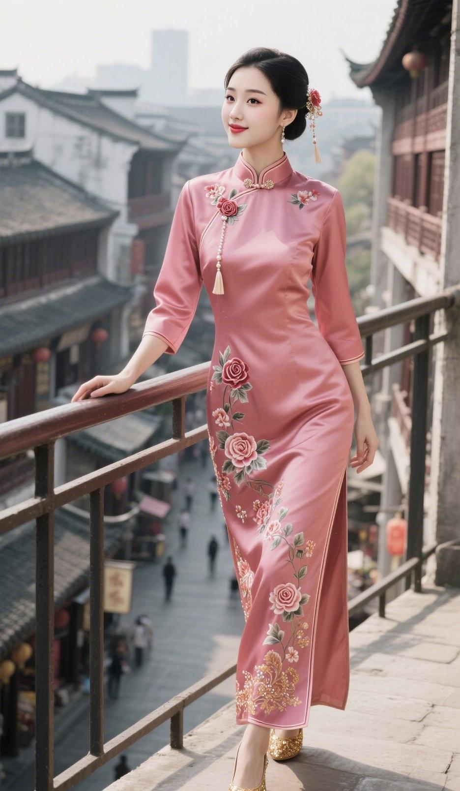 《一身旗袍,一生风雅》 针脚藏起岁月轻, 盘扣系住旧时晴。 一身旗袍落身上, 半卷江南入画屏。 绫罗漫裹玲珑影, 暗香浮动月微明。 不与繁花争艳色, 自有风骨自倾城。 走过长街与古巷, 踏碎流年慢慢行。 一颦一笑皆温婉, 一步一莲是风情。 不必浓妆添俗韵, 何须盛饰掩初心。 一身旗袍承古韵, 一生风雅刻骨魂。 任凭风雨催时序, 独守清欢不染尘。 待到青丝添霜色, 犹存雅致胜青春。 愿以此身寄风雅, 不负流年不负春。 一袭芳华终不老, 半生素养自迷人。 江南风旗袍照 旗袍古典身韵 旗袍水墨风 气质盘扣 墨影竹蝶盘扣裙 盘扣丝绒裙 盘扣雅韵