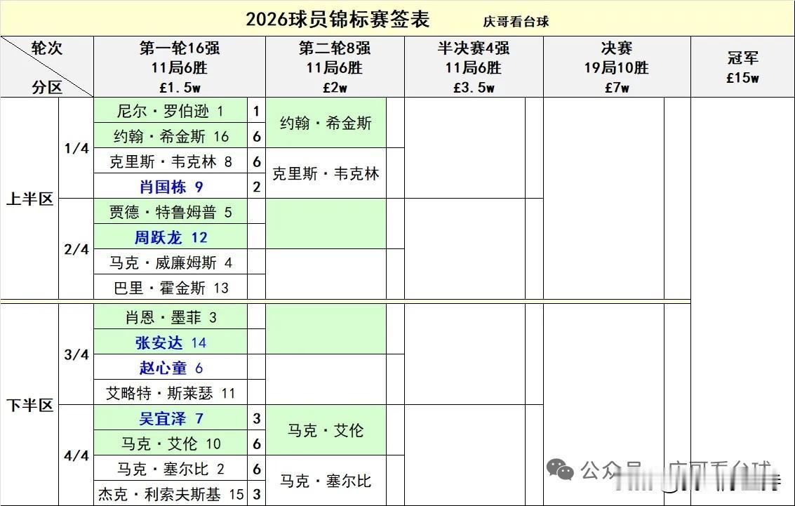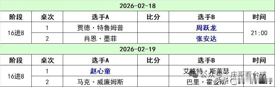 第一天球员锦标赛结束,中国两员大将肖国栋、吴宜泽被淘汰出局。肖国栋对阵韦克林1胜6负,仅仅在冠军联赛赢过韦克林,可以说是一胜难求。 过年期间比赛,对中国球员来说,确实不容易。 今天晚上9点,张安达对阵墨菲,周跃龙对阵特鲁姆普。凌晨3点,赵心童对阵斯莱瑟。看历史战绩,赵心童希望稍微大一点。 期望中国选手高奏凯歌。