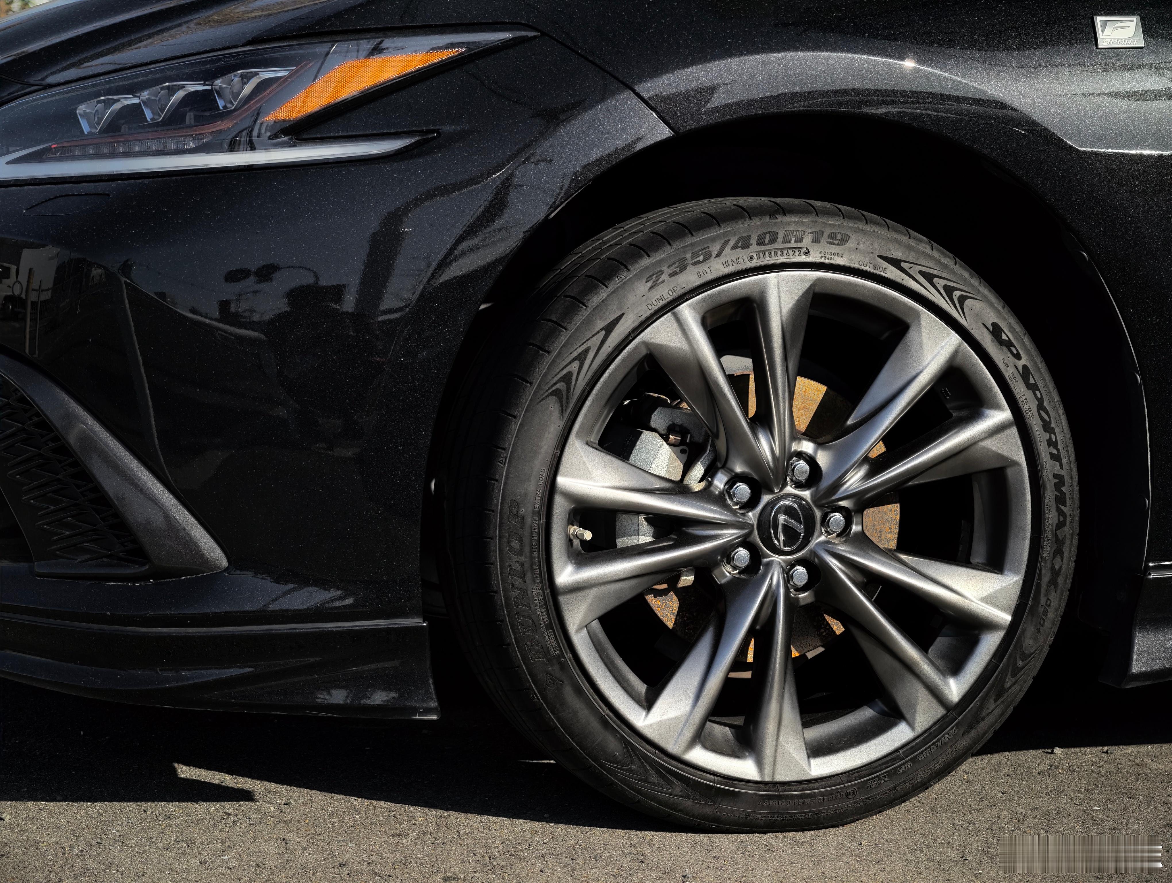 话说这款枪灰色19寸F SPORT轮圈还挺好看,特显大。中规300h F SPORT的轮圈貌似只有纯黑色涂装?