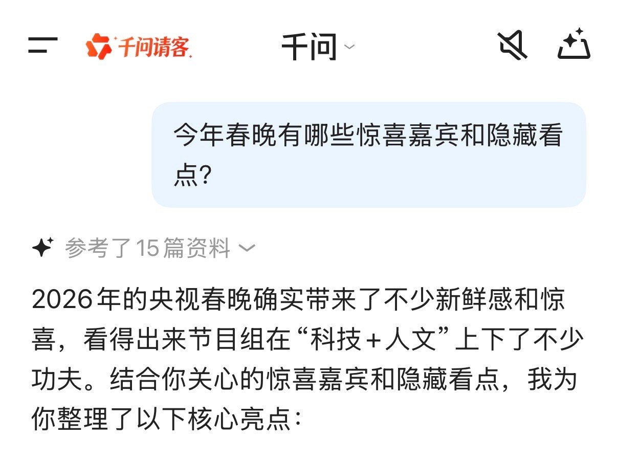 我AI聊春晚 我问千问“今年春晚有哪些惊喜嘉宾和隐藏看点?”总结得还挺全面!