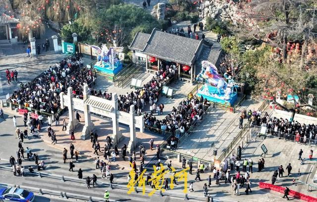 2月18日(农历大年初二)上午,趵突泉公园三个大门外和主景区都设置了隔离通道,现场工作人员引导控制进园流速。尽管游客众多,由于采取电子售票、预约入园等措施,加上客流疏导有序,游客进园还是比较畅通。来自全国各地的游客,一睹三股泉水喷涌的盛景。
