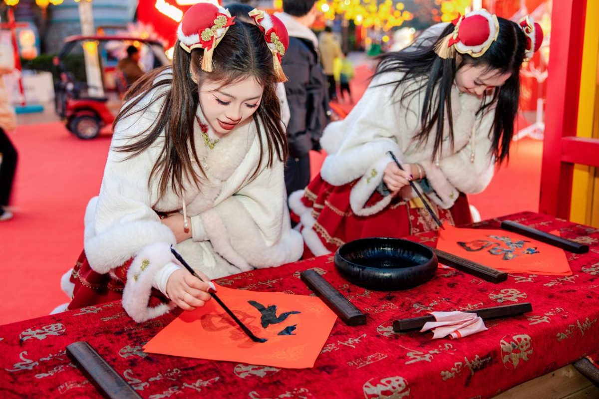 红灯高挂,福意满盈。走进郑州方特旅游度假区,处处洋溢着新春的喜庆气息。在民俗体验区,游客们挥毫泼墨,亲手书写新春福字,一笔一画间传承民俗文化;非遗展演区更是好戏连台,“顶中幡”“板凳龙”“药发木偶戏”等非遗技艺轮番上演,与乐园场景深度融合,让游客在欢声笑语中沉浸式感知文化脉动。
