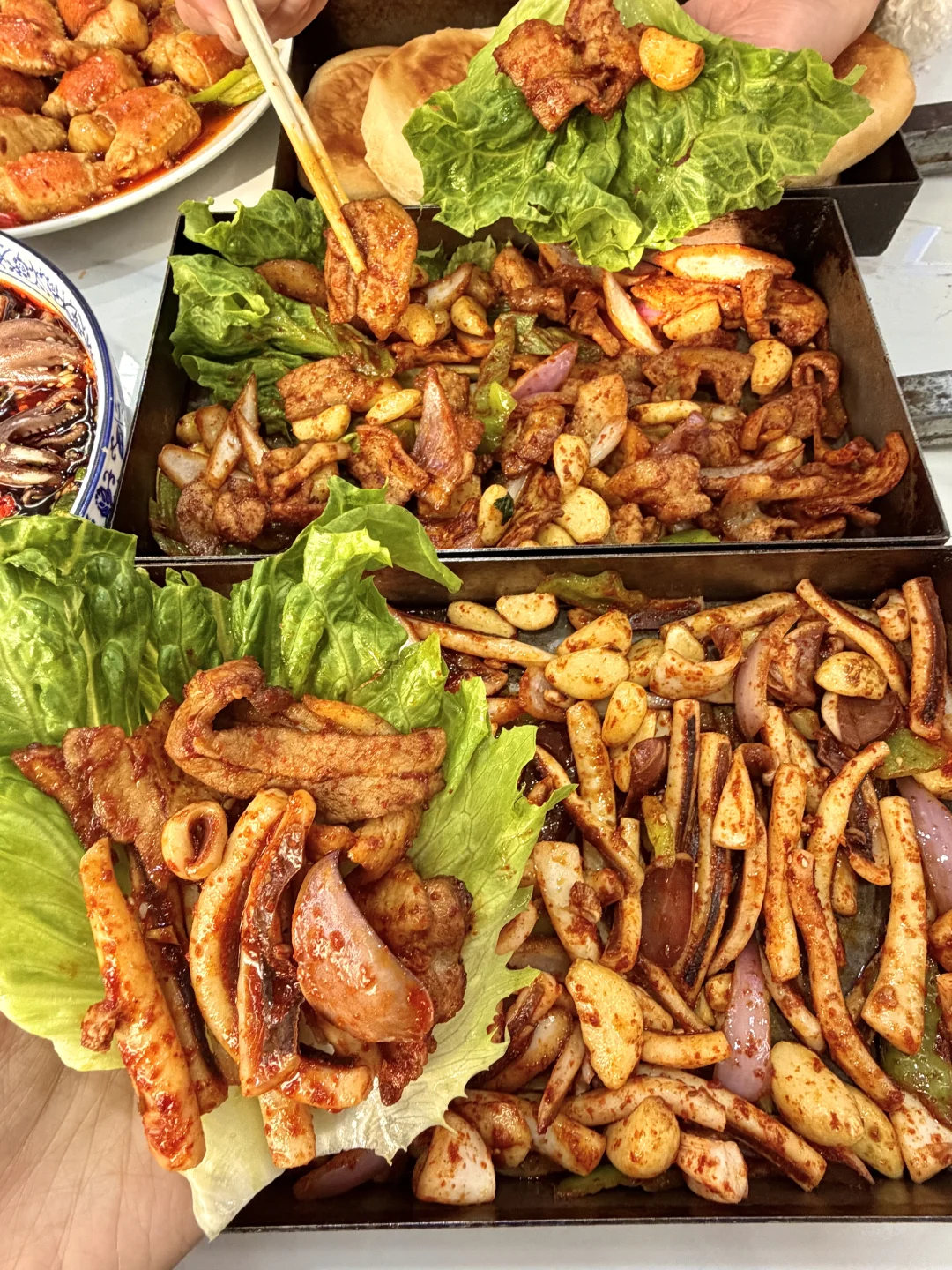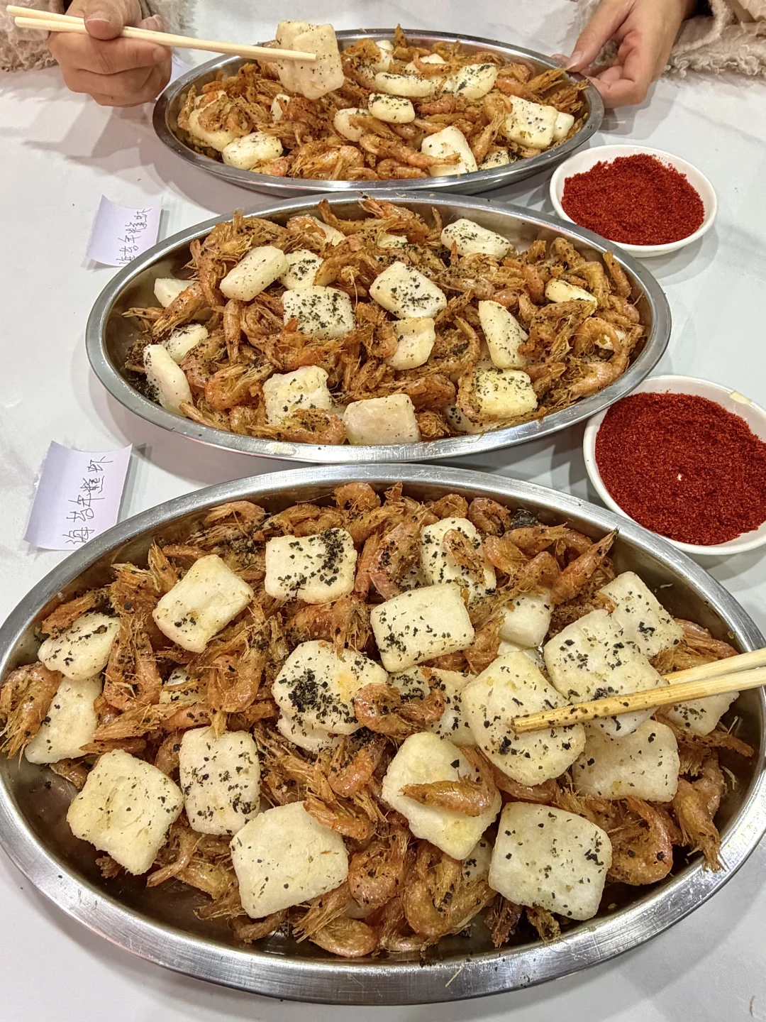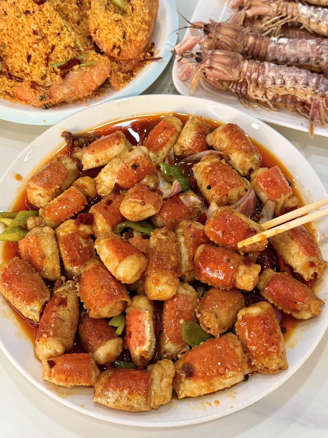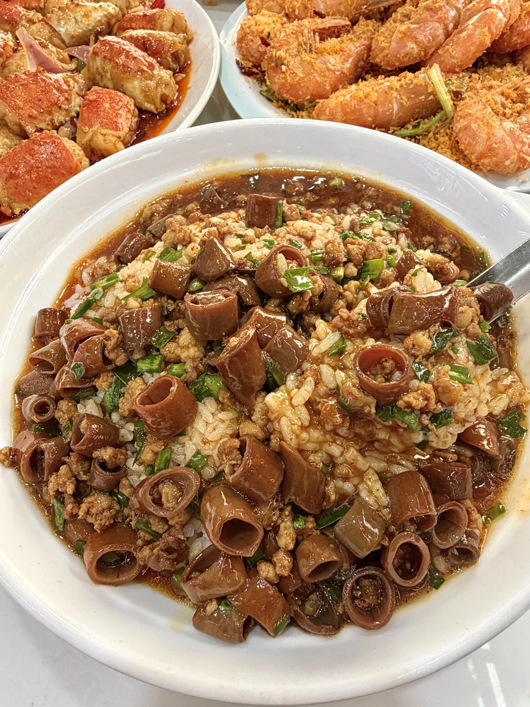 名不虚传好吃😭听说好多明星也来打卡过!海苔年糕虾一定要点!刚炸出来酥酥脆脆香迷糊了!还有海肠捞饭,碳水星人真的爱惨了 不是本地人都找不到的老店!没啥环境口味却比,台东步行街其他那些预制菜强太多了🥹🥹戳子五花肉、戳子鱿鱼、椒盐皮皮虾……都嘎嘎好吃下饭~一定是我会带朋友来青岛n刷的店!叫:李二戳子肉,离五四广场不远