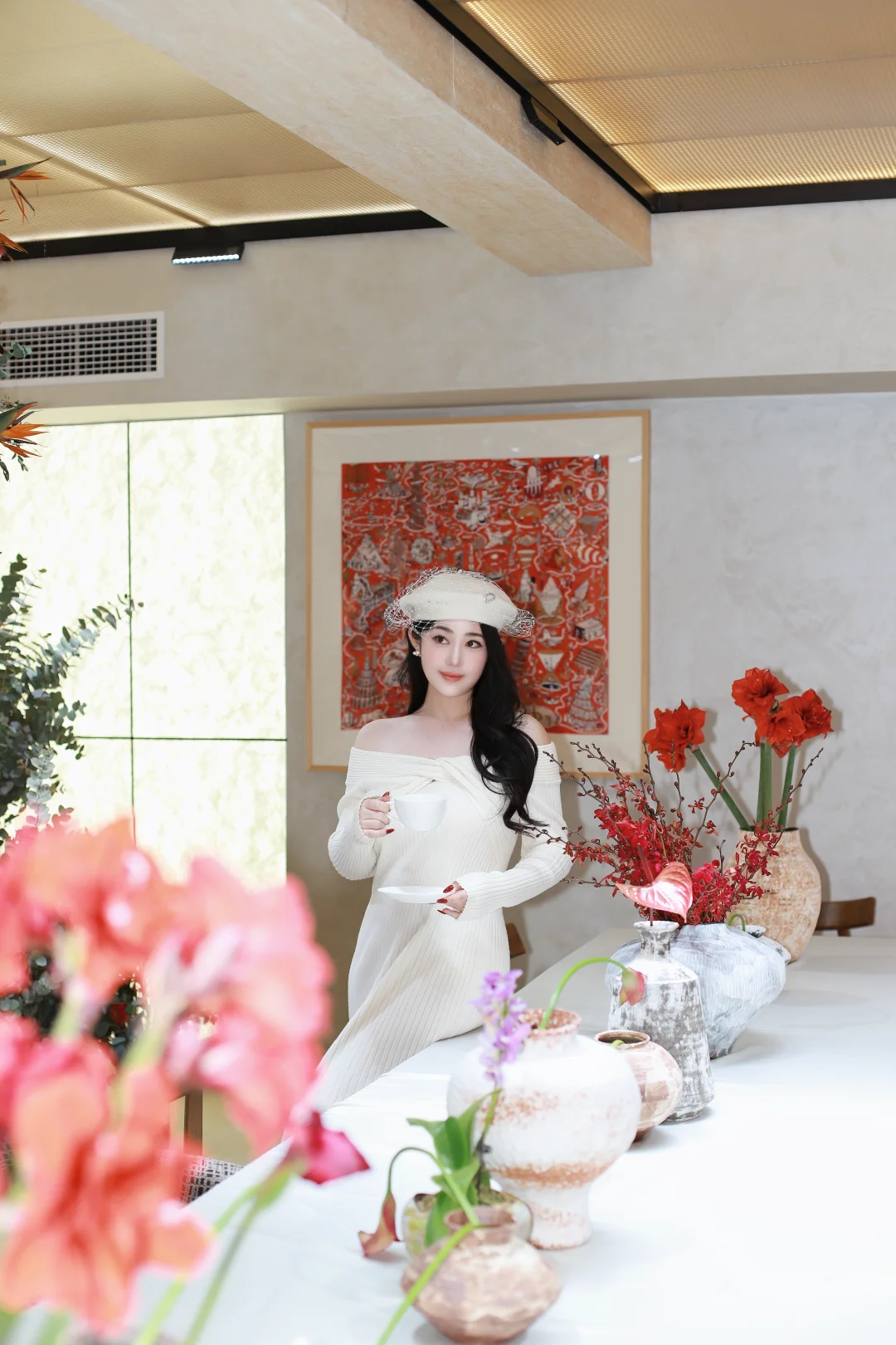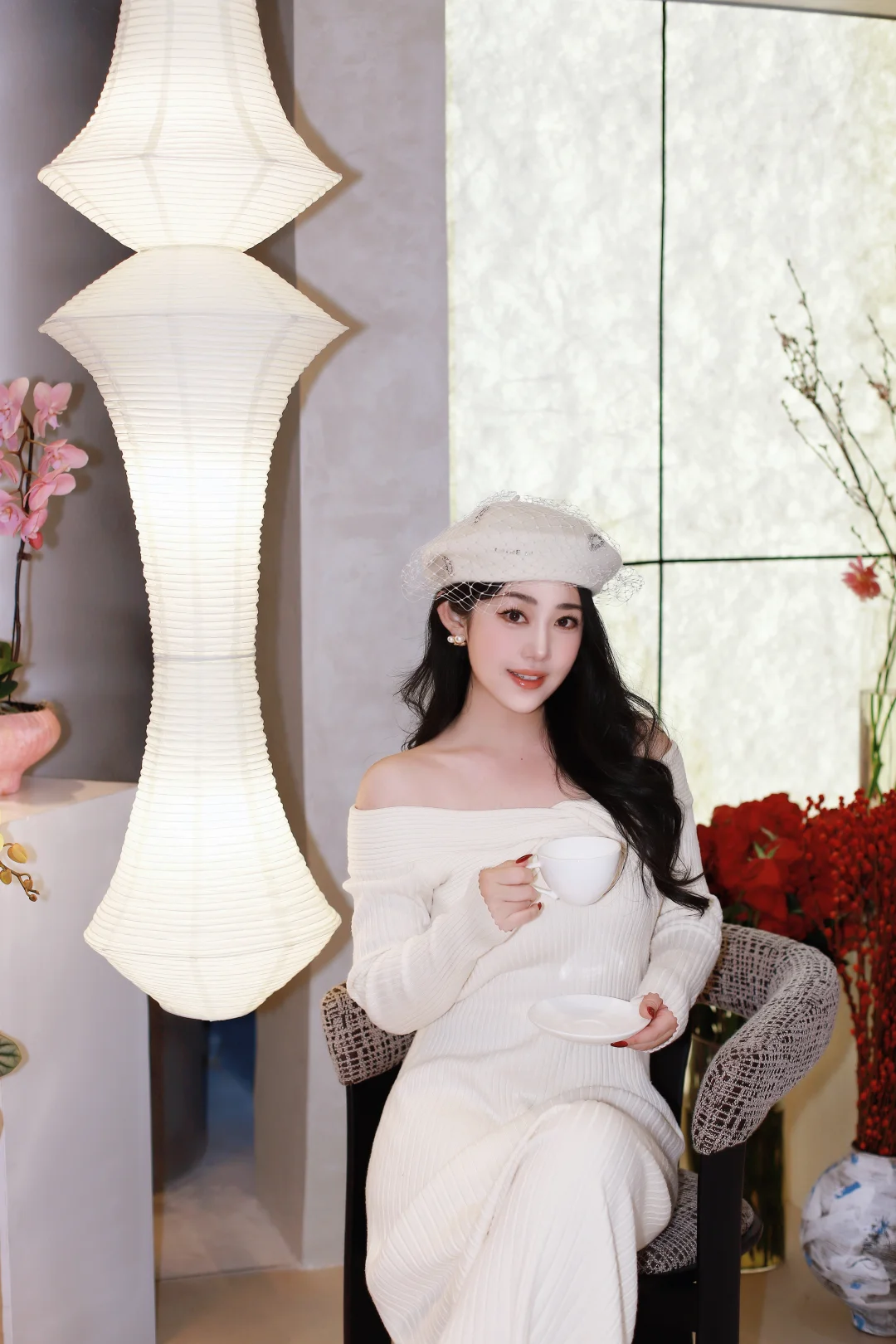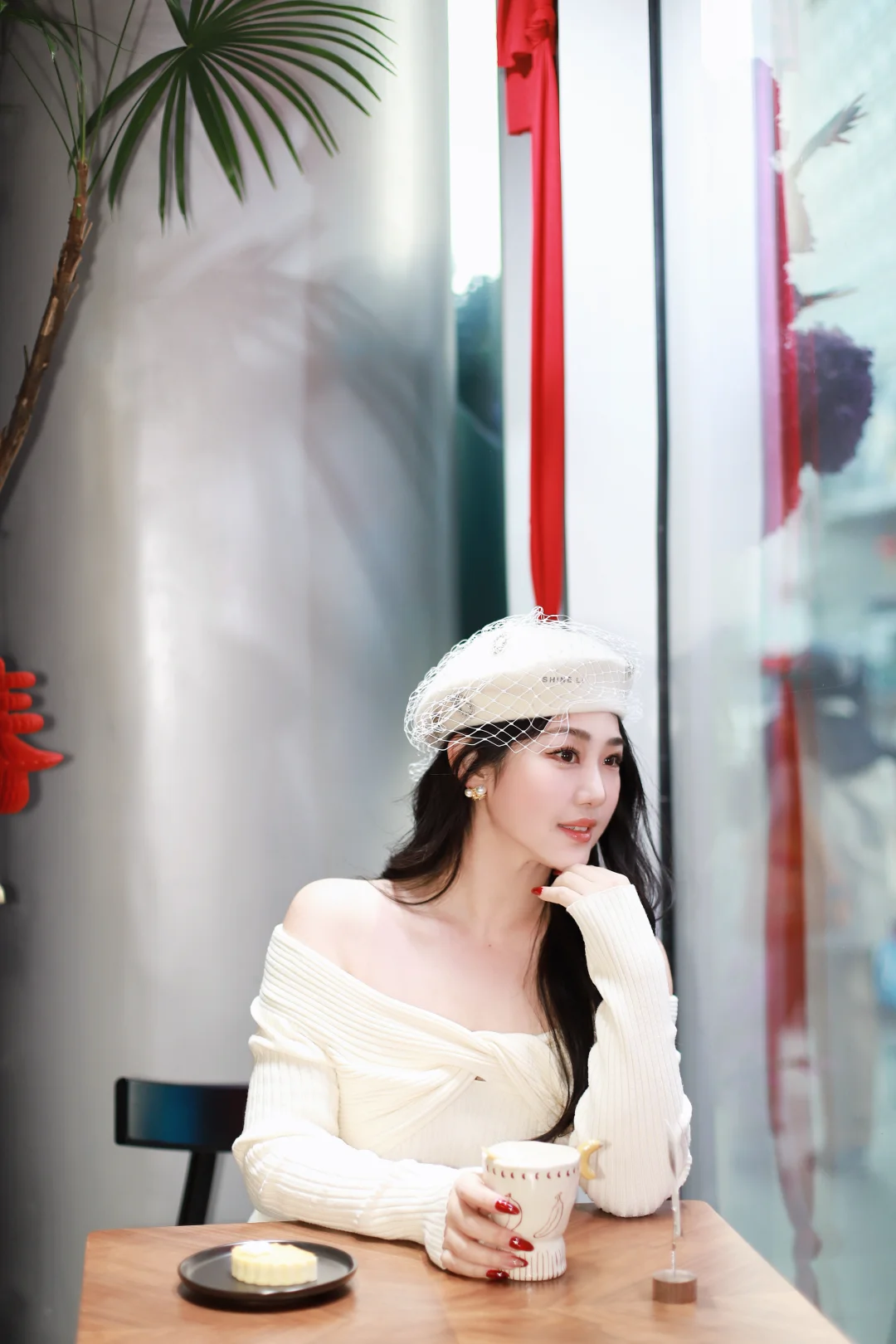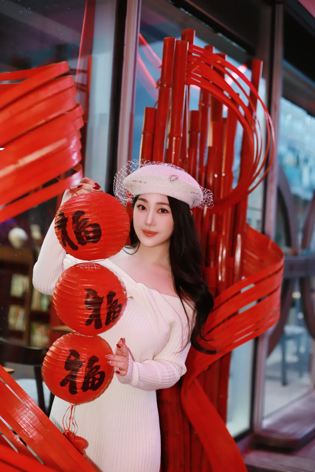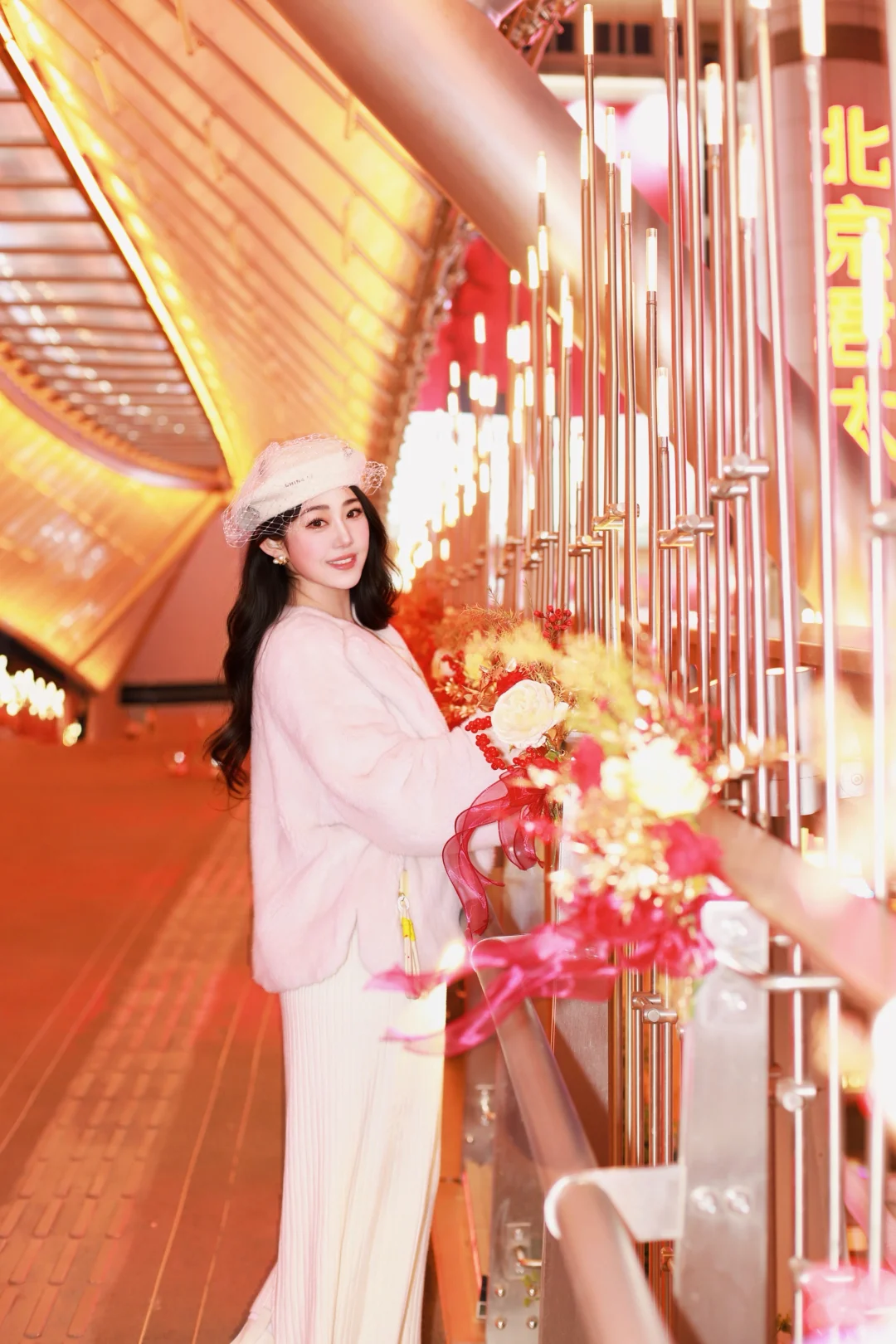 特意穿了一身温柔的米白色,想和这满街的暖黄灯火撞个满怀。毛绒绒的大衣裹住了北京的晚风,也裹住了新年的松弛感🧧