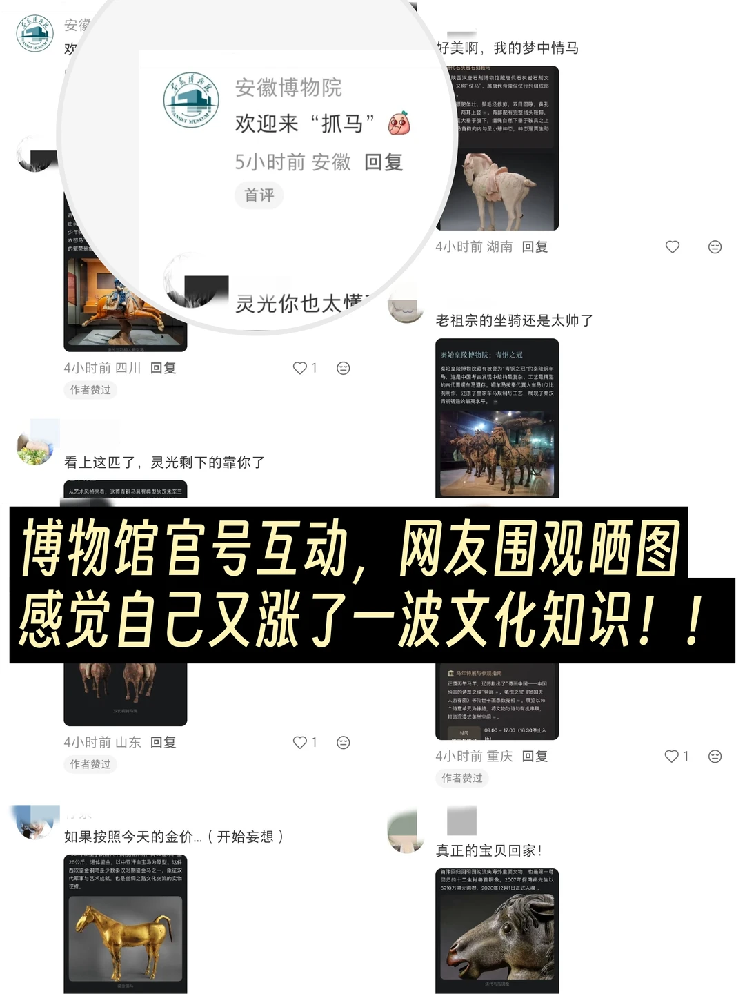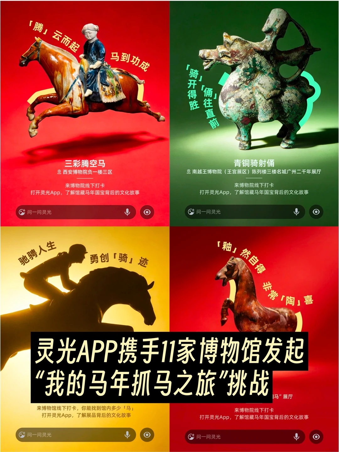 它携手11家博物馆发起「我的马年抓马之旅」挑战,联动北燕铜鎏金木芯双马镫、秦陵一号铜车马等十余件珍贵马文物。在APP里不仅能听文物背后的文化故事,还能通过3D建模沉浸式感受文物的形态之美,千年文物的中式美学被展现得淋漓尽致。线下各家博物馆还邀网友带着灵光打卡辽博,近距离感受马文化魅力。