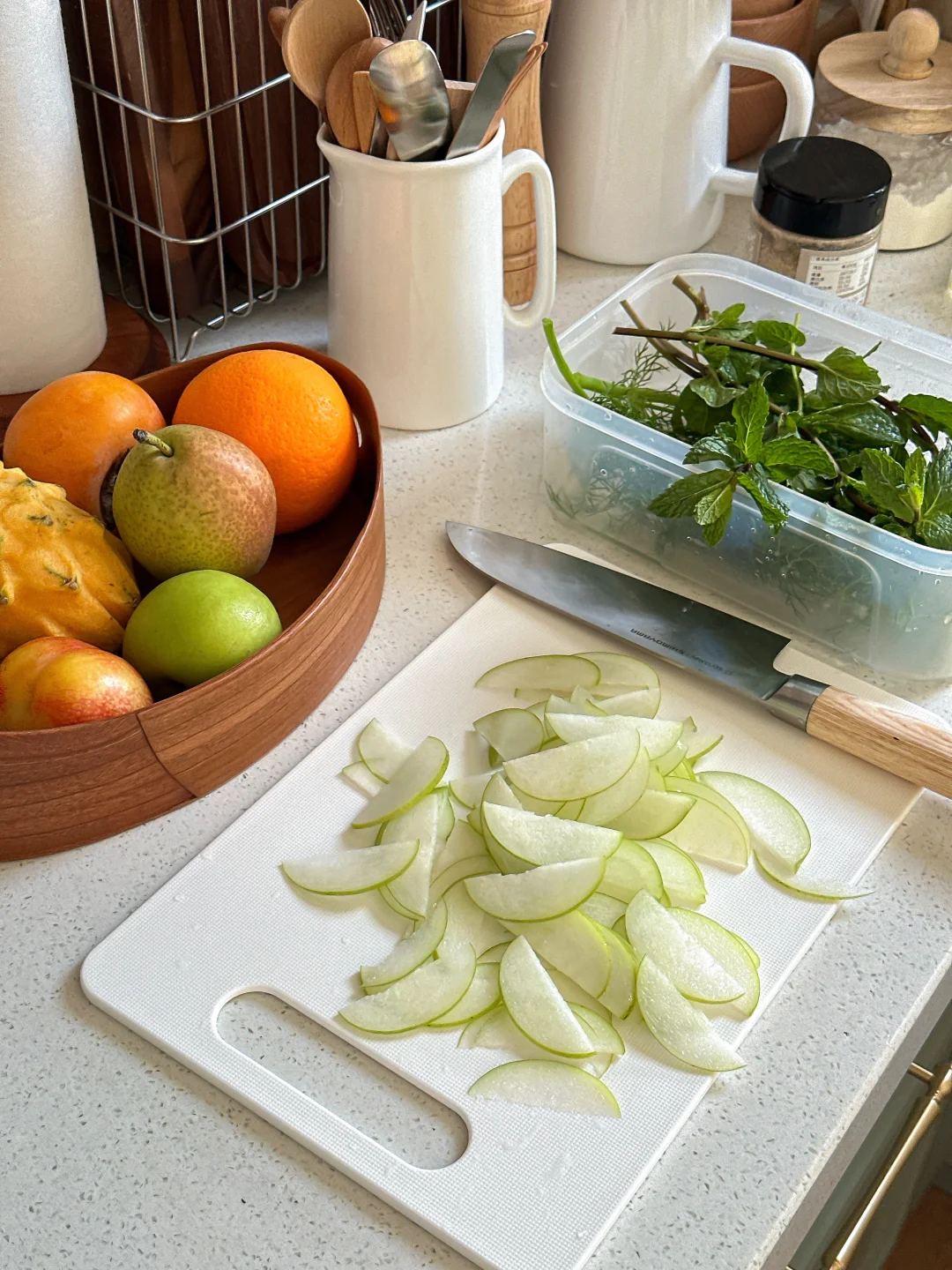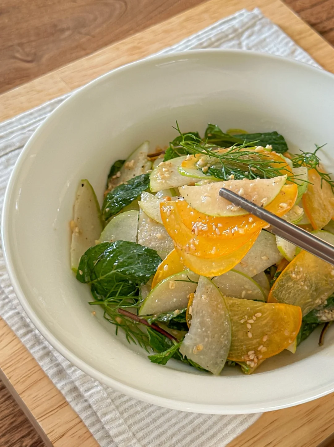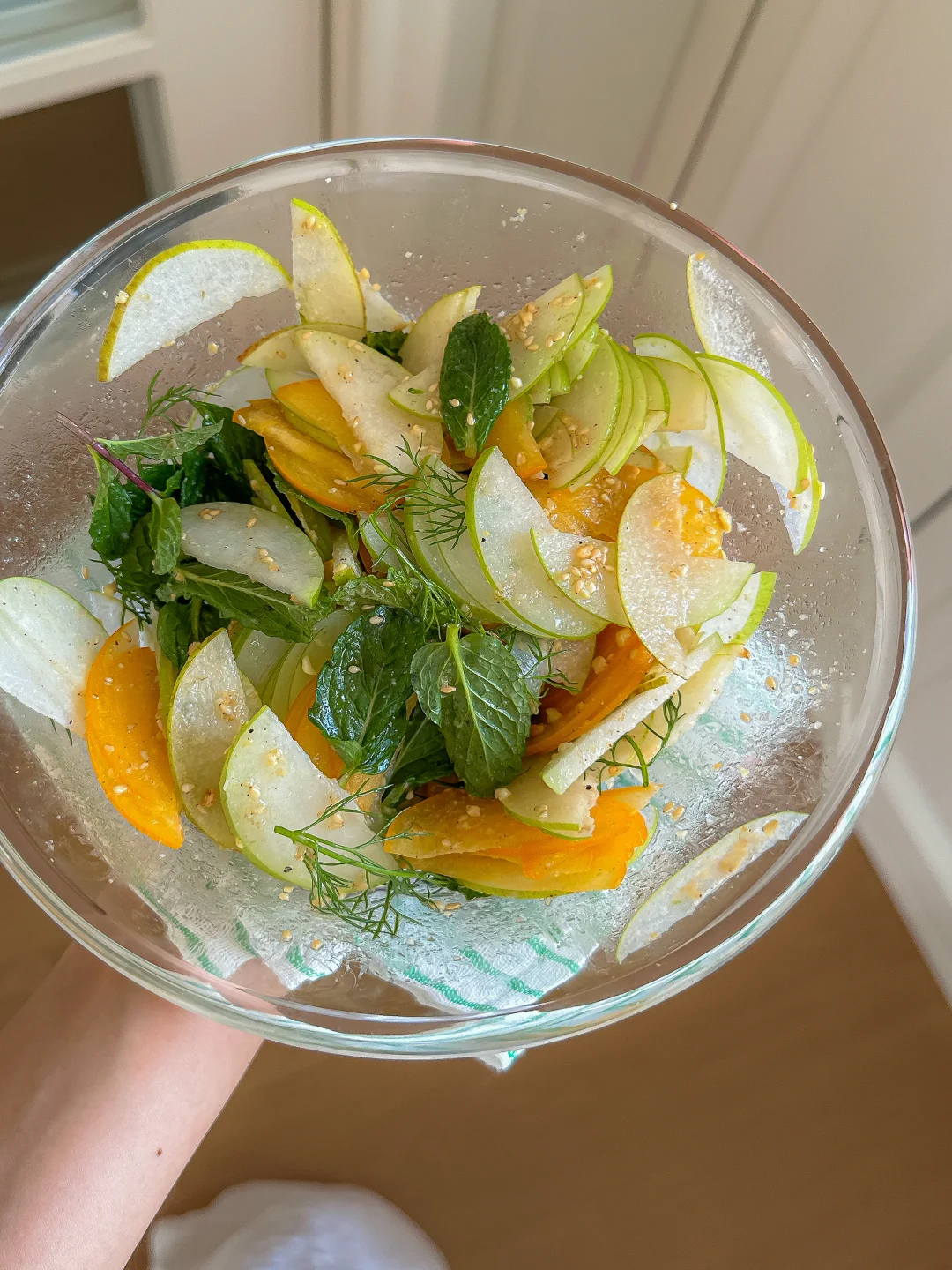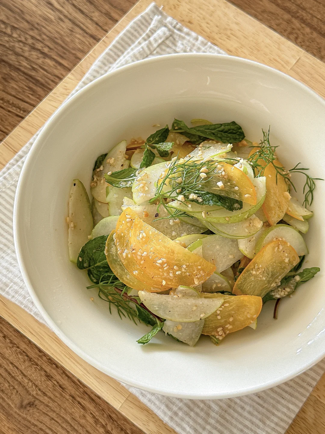 薄荷 青枣 香梨🍐 茴香 脆柿 做法简单惊艳又美味🤤 口感hin独特 酸甜中还带有一丝薄荷的草本香气! 吃起来冰冰凉凉的很舒服 清火排浊🍃 大吃大喝后吃上一口 低卡清新 爽口又解腻 节后减脂快去get起来吧❗️