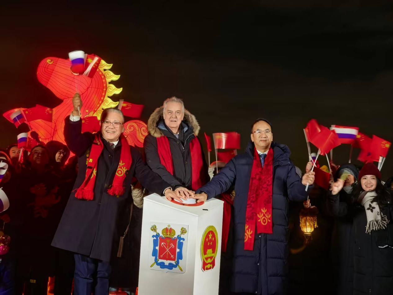 当地时间2月14日至16日,由文化和旅游部、四川省人民政府、中国驻圣彼得堡总领馆和圣彼得堡市政府共同举办的2026年“欢乐春节·四川风采”系列活动在俄罗斯圣彼得堡成功举办,向圣彼得堡市民及当地华人华侨送上了一份“四川味道”浓郁的春节年夜饭。“自贡彩灯点亮涅瓦河畔”灯展在彼得保罗要塞同期开幕。素有“天下第一灯”美誉的自贡彩灯共10组璀璨绽放,生动展现中国非物质文化遗产精湛技艺,流光溢彩的灯组吸引众多市民驻足观赏,成为照亮当地夜色的一道亮丽风景线。