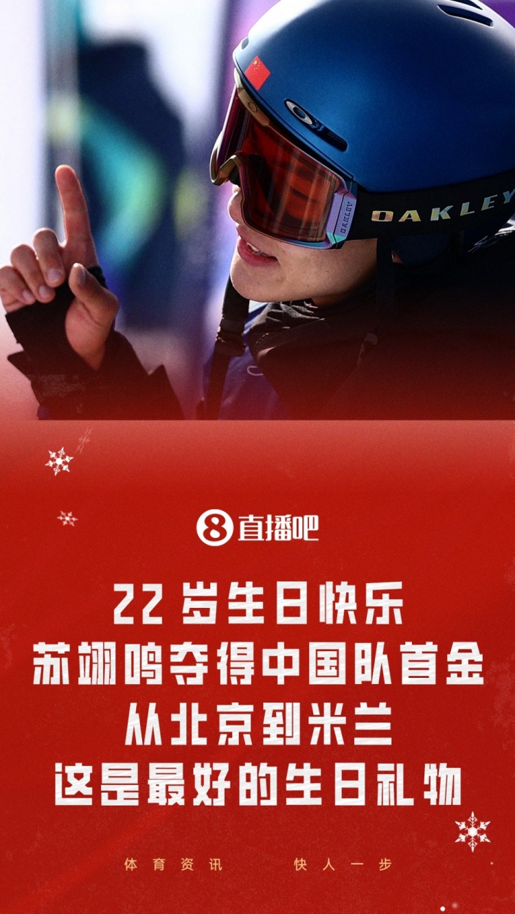直播吧2月18日讯米兰冬奥会单板滑雪男子坡面障碍技巧决赛,今天迎来22岁生日的中国选手苏翊鸣以82.41分夺得金牌!获得个人冬奥会的第4枚奖牌!他成为中国首位单板滑雪奥运双金王。