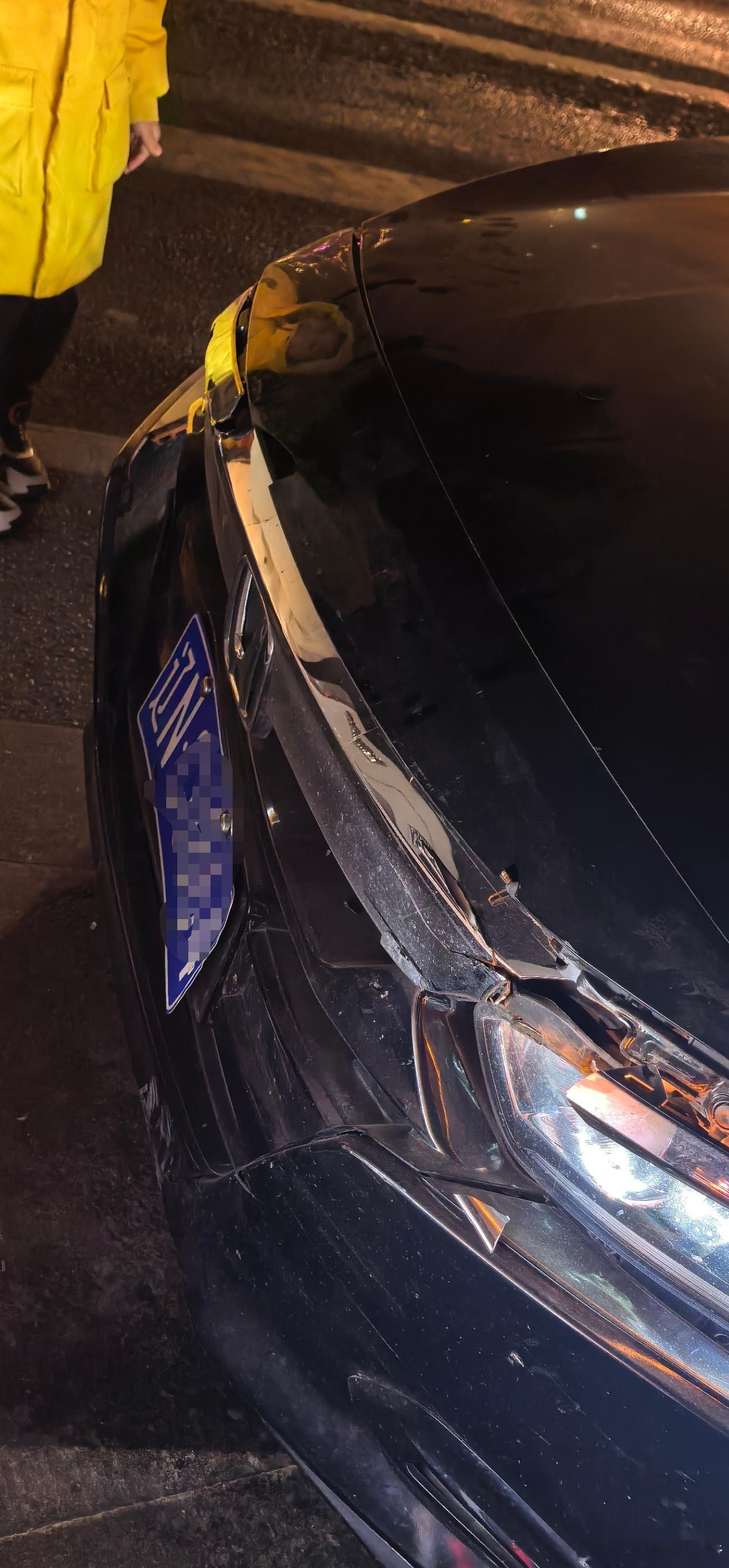 刚刚陪孩子吃完烤串,回来的路上,被撞了,我的国产车基本可以忽略,就撞进去大概2c