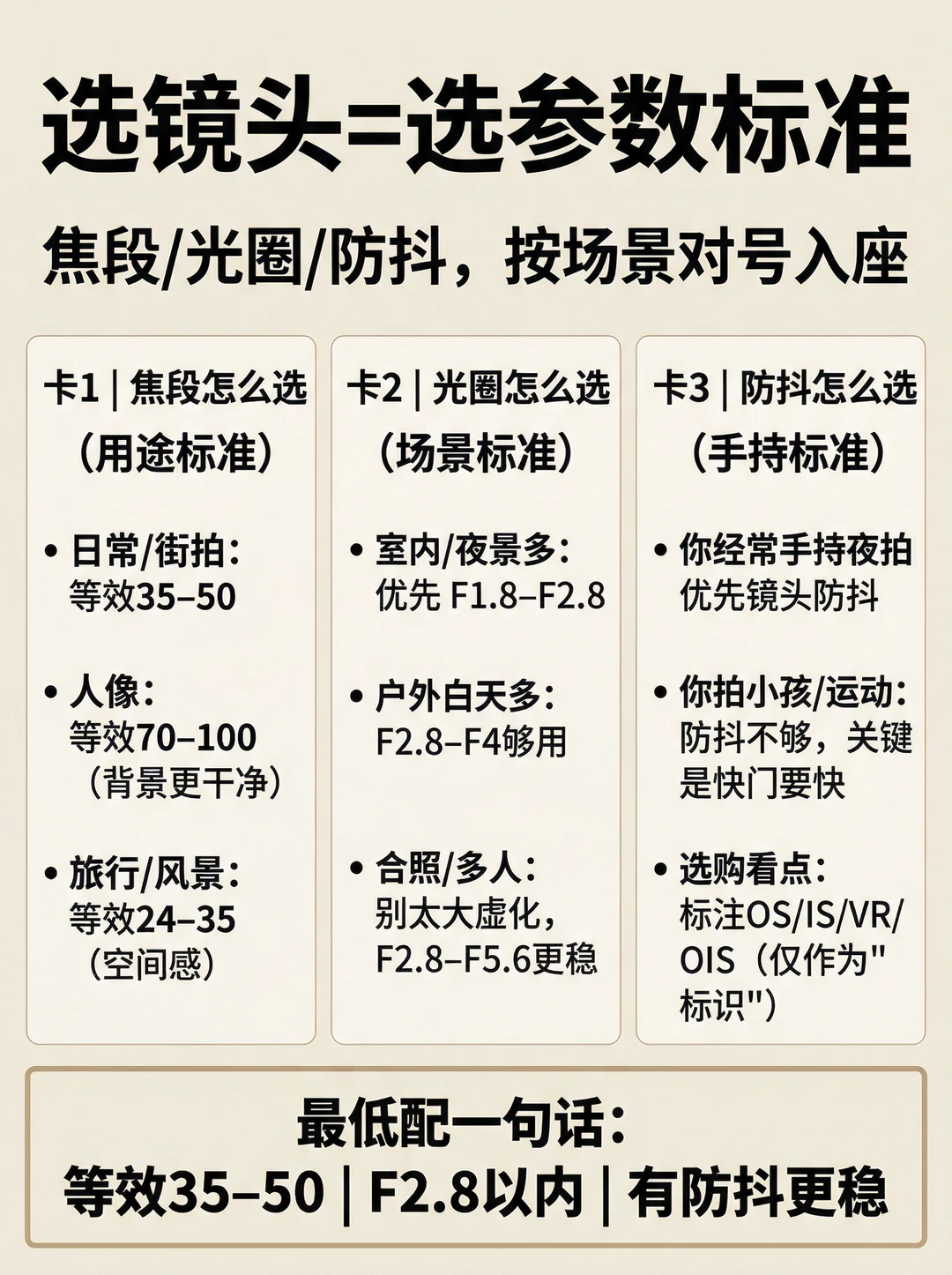 这篇我把选镜头拆成可执行的参数标准,照抄就能少花冤枉钱👇