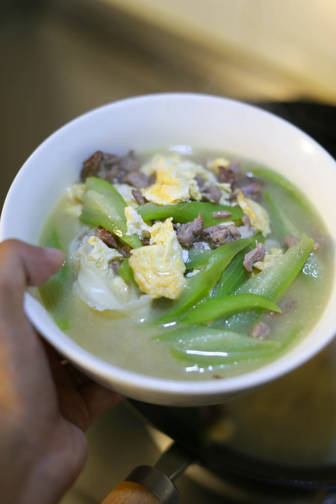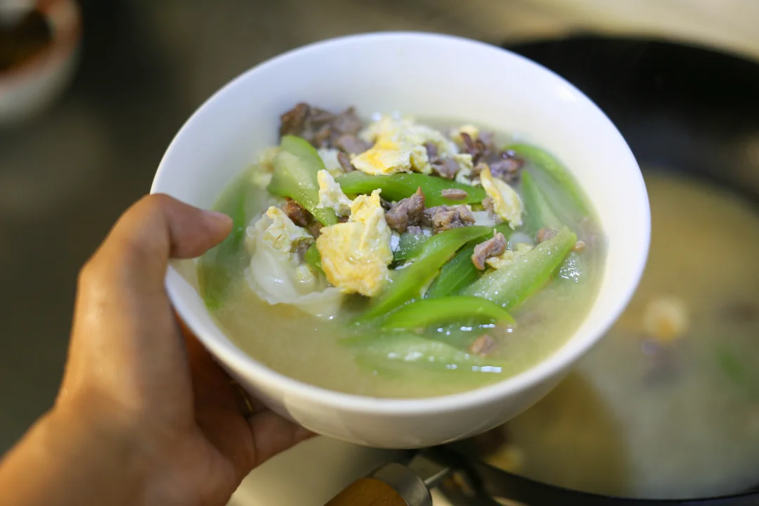 丝瓜肉沫鸡蛋炝锅面(349)清香不腻 挺开胃