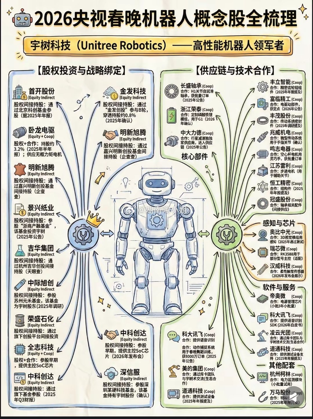 春晚机器人四大天王炸场,投资还是要看细分赛场。下面四张图是目前总结得清晰明了的。
