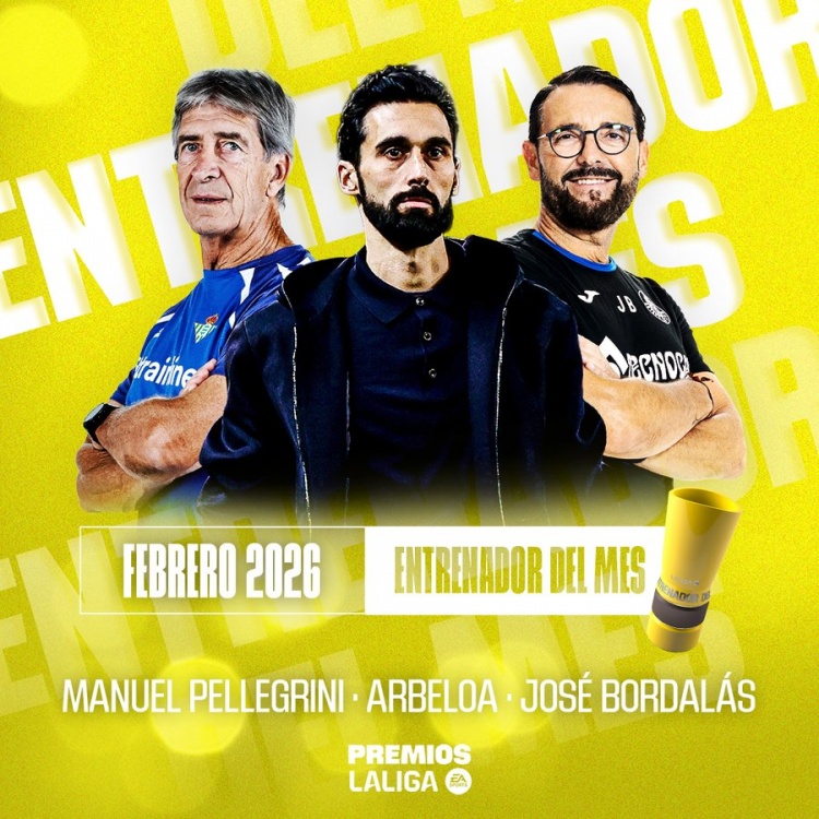 直播吧2月19日讯西甲官方公布联赛2月最佳教练候选,阿韦洛亚、佩莱格里尼、博达拉斯三名教练入围。