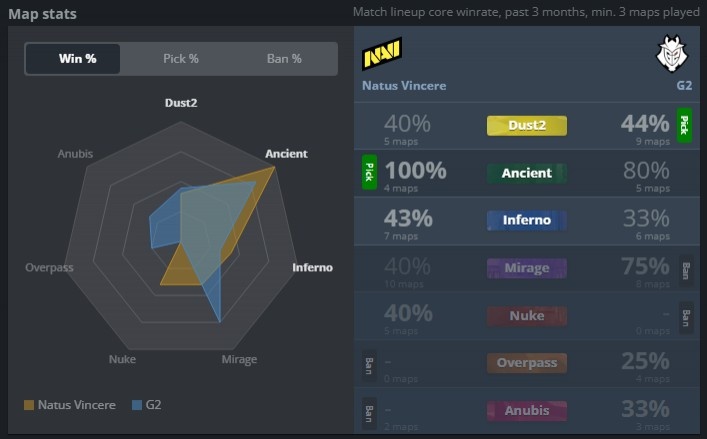 图二NAVI选图远古遗迹先攻,手枪局重神三杀让G2拿到首分,太阳神两回合五杀,G2连拿2分。NAVI进攻频频受挫,G2连拿5分。第6回合NAVI终于打A得手,iM用tec-9手撕太阳神大狙让NAVI拿到首分。随后B包点混战,双神合体两回合九杀拿到第7分。阳叔大狙第9回合一穿二后,表哥次回合三杀,G2拿到第9分。NAVI暂停回来守住A包终于拿到第2分。半场结束前,b1t燃尽四杀,NAVI得以3-9结束上半场。