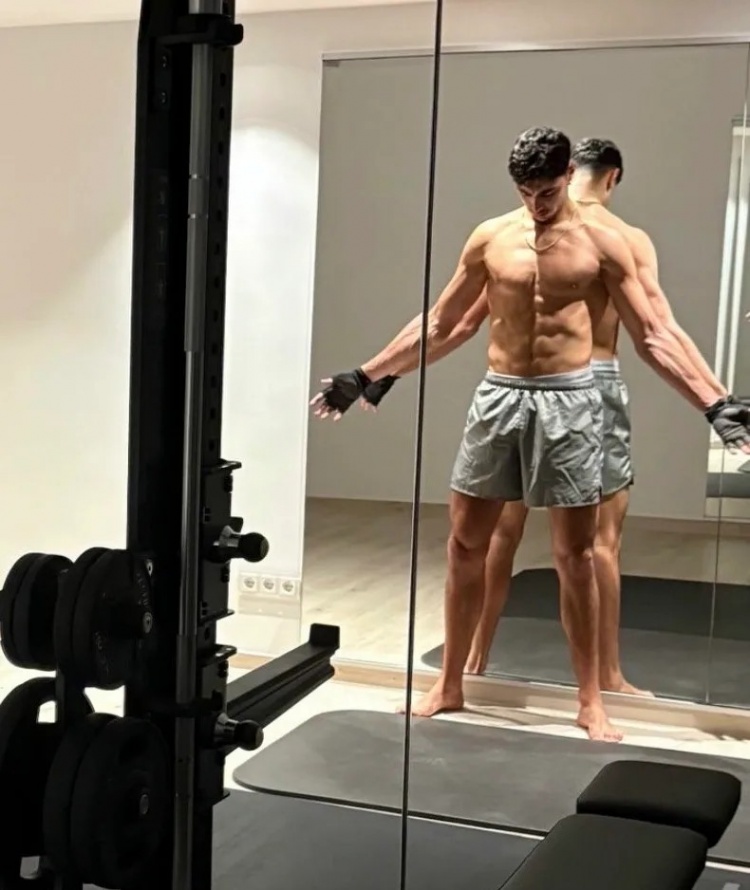 这位21岁的德国国脚近日在社交媒体晒出赤裸上身的照片,展示了令人印象深刻的六块腹肌和发达的胸肩肌肉。