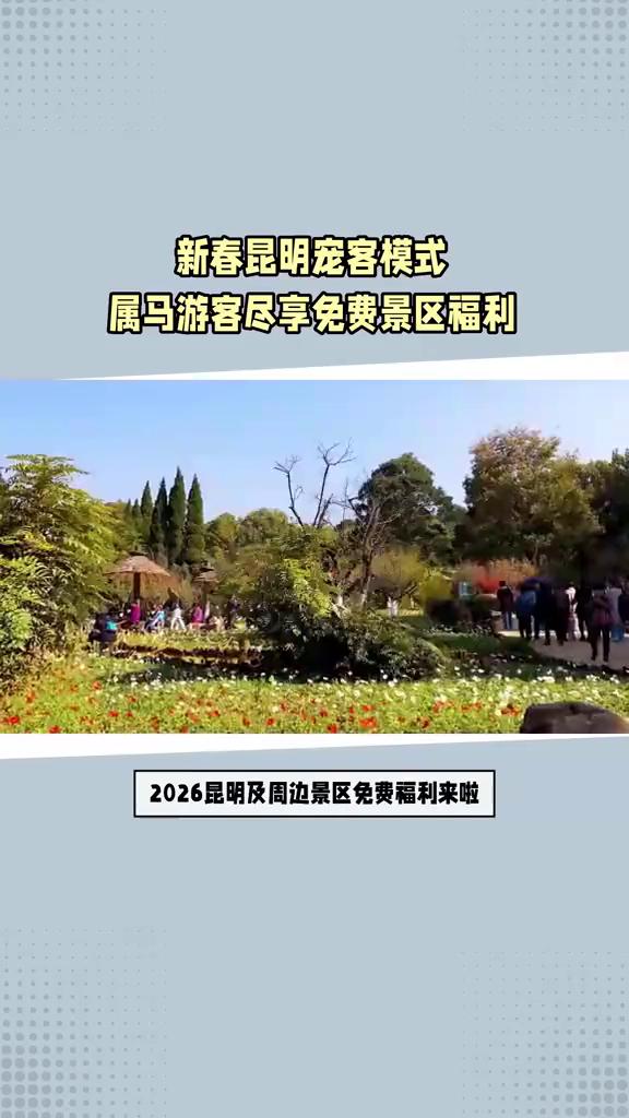 新春昆明宠客模式,属马游客尽享免费景区福利。 属马、姓马游客免费,2026昆明及周边景区免费福利来啦!2026年新春,昆明开启"宠客模式",属马的朋友有福啦,好多免费景区等你打卡。 ·先说说翠湖公园,以郁金花开迎新春,彩灯璀璨庆佳节为主题,举办第十四届郁金香花展,约20.04万株郁金香,有26个品种,还有4万株时令花卉,总面积达5000平方米。公园还通过调节温度、两次种植延长观赏期,南门、西门的打卡景点超适合拍照。 ·除此之外,南屏步行街的活动也很精彩,"五花迎春"主题活动,大型艺术花雕"观山观水观春城"超吸睛,还有特色互动环节,汉服少年送花、歌曲演唱、财神巡游,氛围感直接拉满,属马的小伙伴别错过这场盛会。 属马免票景区马年免门票景区马年免票攻略:马年免费游昆明游玩路线:属马免费景区:属马景区昆明马年,拍照马年昆明头条。