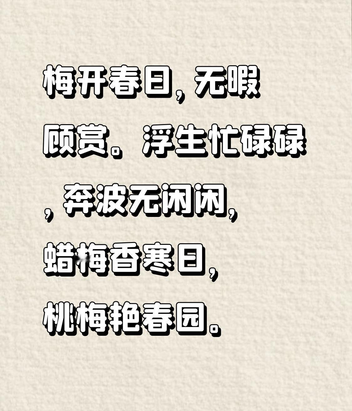 早春 浮生忙碌碌,早晚少闲闲。 蜡梅香春日,桃梅艳南园。