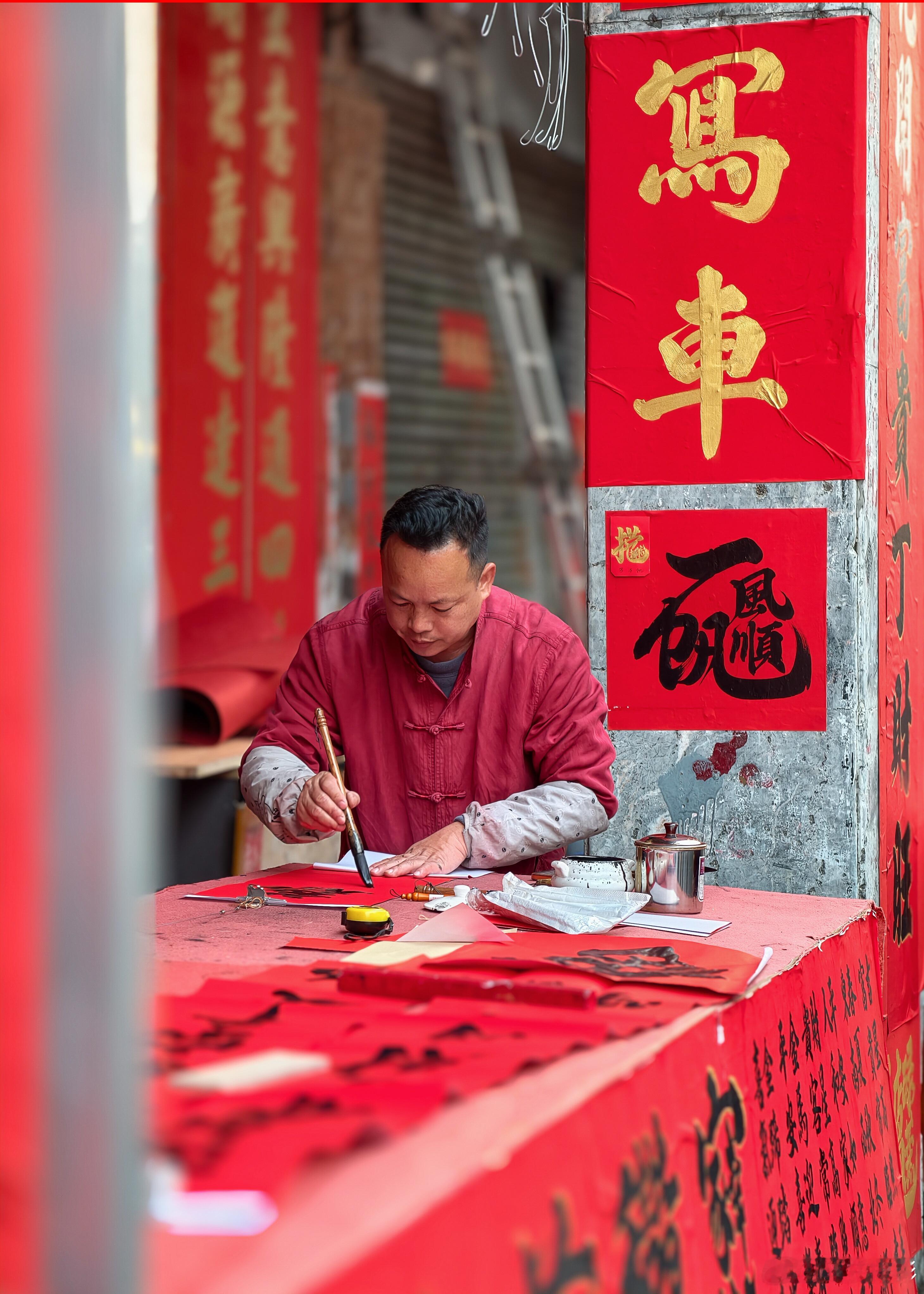 佛山快子路的年味,是笔尖写下的祝福,是梯上挂起的红火。打工人的手,也能写出最暖的