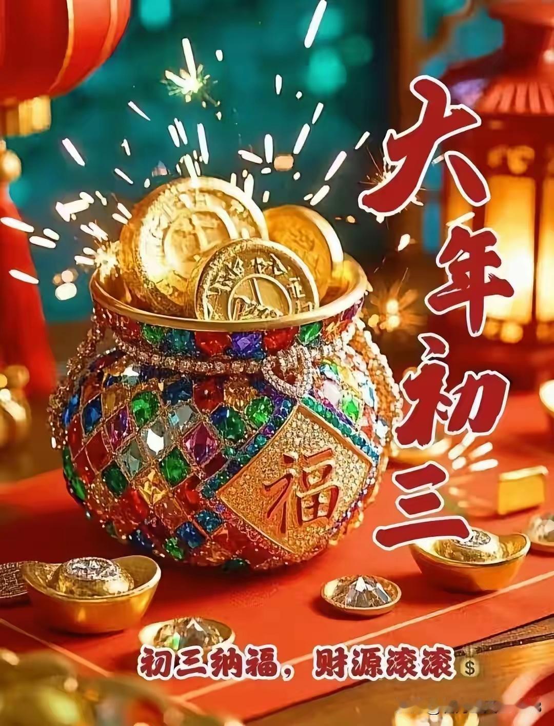 大年初三,愿我们顺遂吉祥,美好常伴,喜乐安康,一顺百顺![福][招财进宝][锦鲤