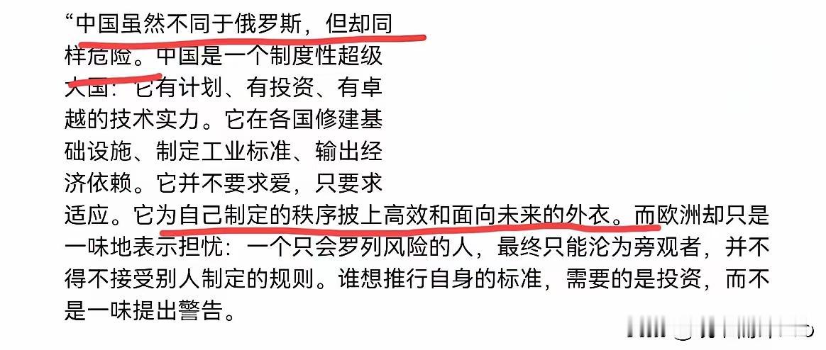 污蔑中国是现代帝国主义,说中国非常“危险”,就是“羡慕嫉妒恨”! 德媒表示,现代帝国主义,不是来自布鲁塞尔,更不是来自柏林,而是来自莫斯科,以及来自使用更为隐蔽经济手段的北京。欧洲必须意识到中国已经是一个制度性的超级大国,且非常“危险”。 请问:近代以来的殖民主义、帝国主义、霸权主义的发源地和大本营是哪里?就是欧美。靠战争、殖民、不平等条约、军事同盟、颜色革命、金融收割搞扩张的,是西方历史与现实的主线。 ​ 这些污点和中国不沾边!中国没有殖民地、不搞军事扩张、不颠覆他国政权、不把自己制度强加于人,却被硬扣“帝国主义”帽子,这是典型的贼喊捉贼。 中国光明正大!把中国提倡的“一带一路、贸易投资、基建合作、互利共赢,”说成是“隐蔽经济手段”,就是“羡慕嫉妒恨”。我们在造福全人类,就是动了一些人的奶酪,他们是作威作福的既得利益者,他们是趴在全人类身上的吸血鬼! ​ 欲加之罪何患无辞!说中国是“制度性超级大国、非常危险”,潜台词很直白:只要你不照搬西方制度,你越发展、越强大,你就越“有罪”。 西方在转移矛盾,嫁祸于人!这篇言论毫无事实依据,充满意识形态偏见与西方中心主义傲慢,本质是为了转移欧洲内部矛盾、制造外部敌人、服务地缘政治对抗。 资本主义的缺陷 德媒评中国崛起 日本帝国主义 德国式资本主义